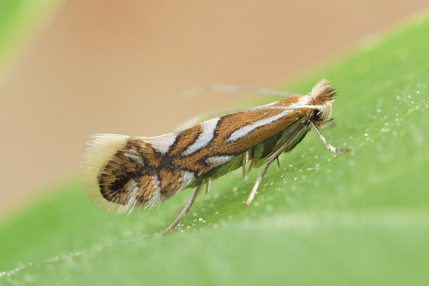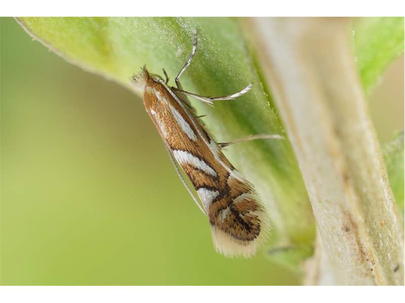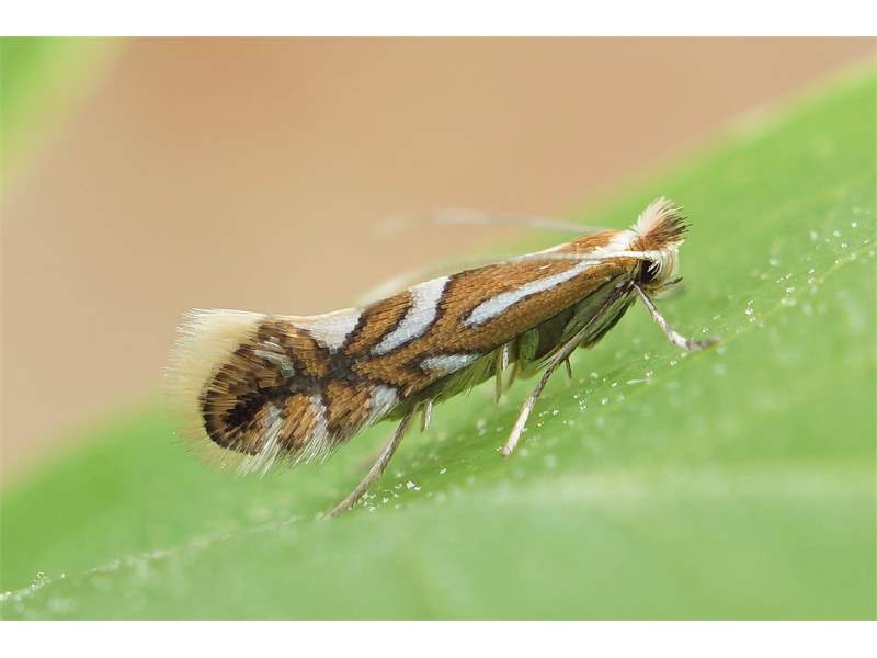 Ähnliche Arten: Die Falter anhand der Flügelzeichnung nicht von Phyllonorycter oxyacanthae und Phyllonorycter mespilella unterscheidbar.
