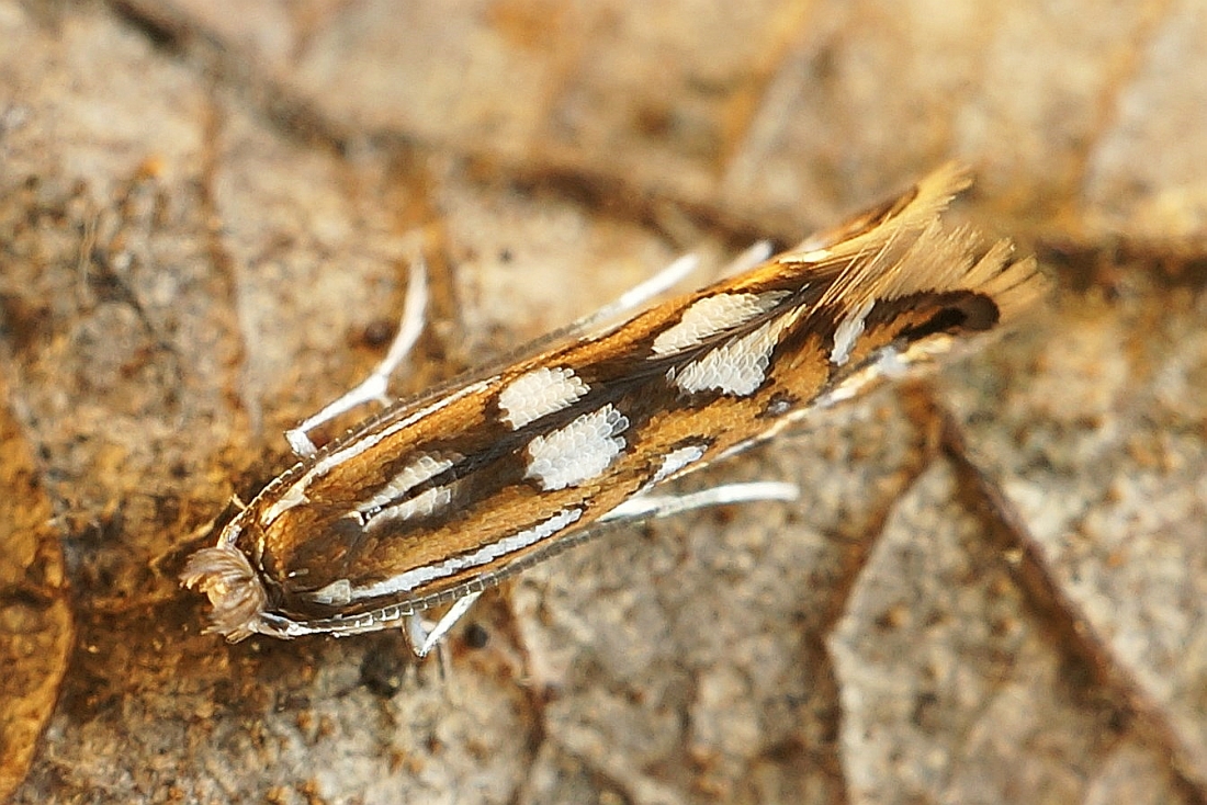 Vorderflügel: Grundfarbe ocker, weißer Basalstrich, weißer Basalfleck, vier weiße Costalstriche und drei weiße Dorsalstriche; alle weißen Zeichnungselemente kräftig schwarz gerandet und etwas variabel in der Ausprägung. Ein schwarzer Apikalfleck.