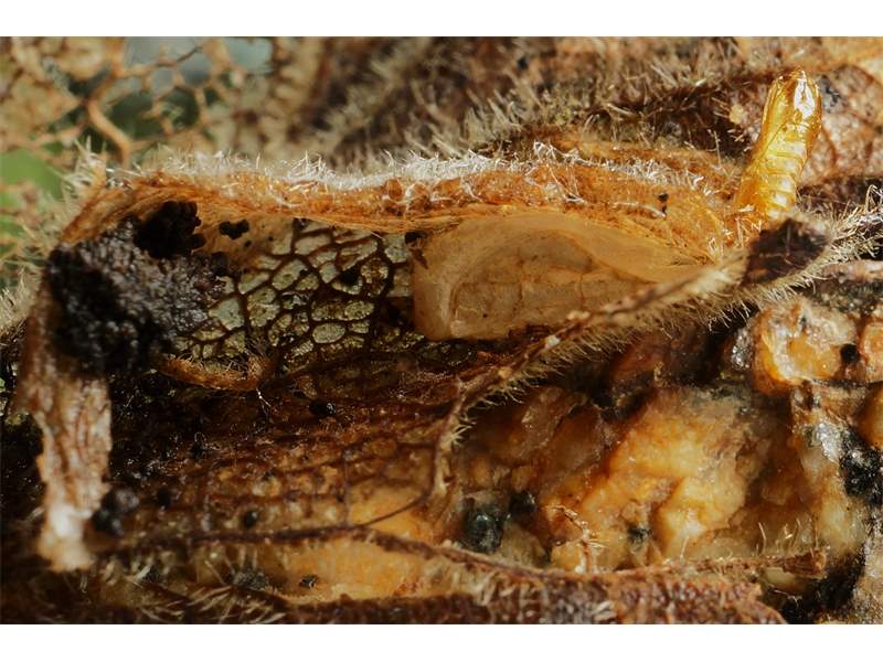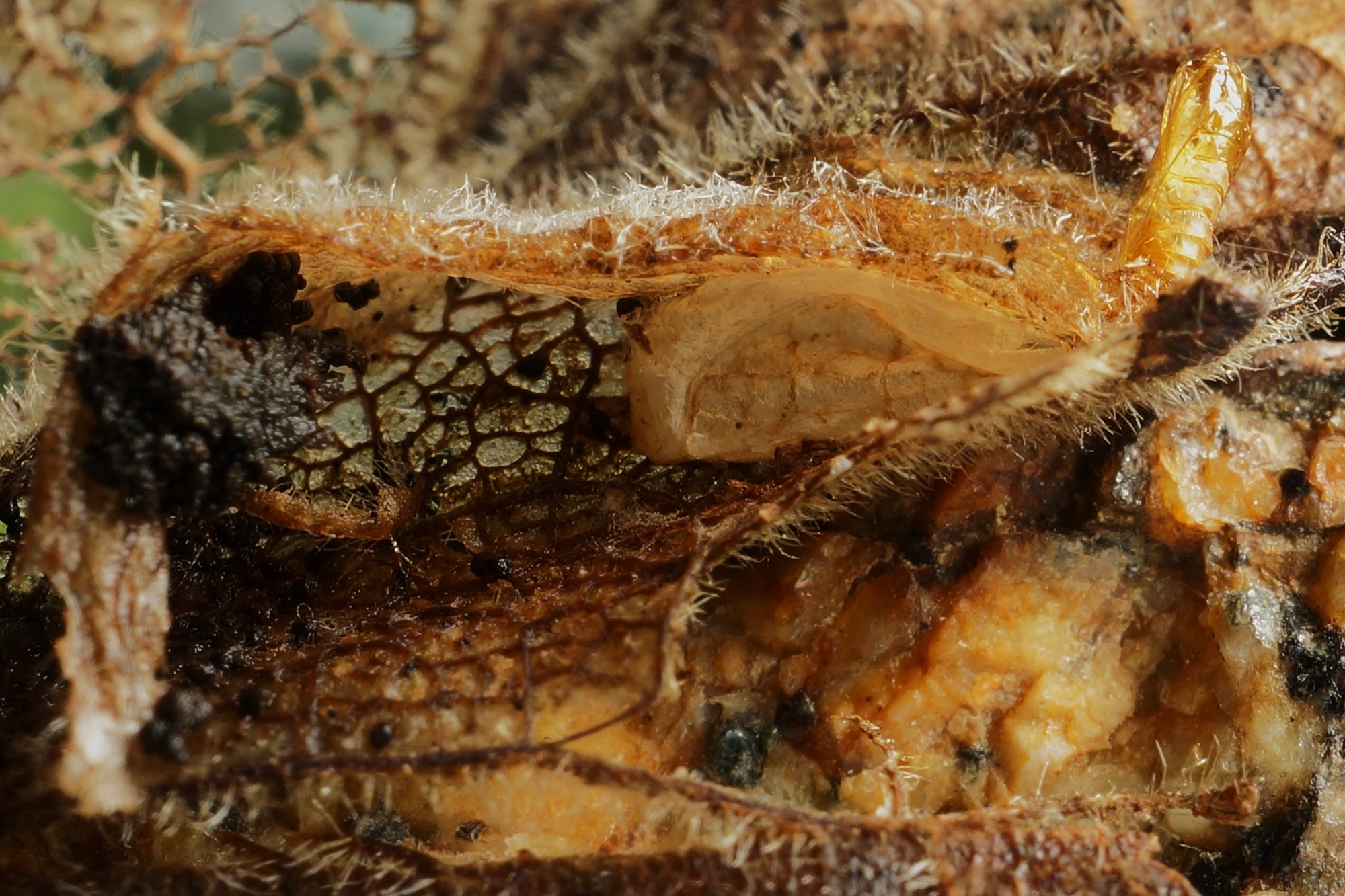 Exuvie von Phyllonorycter ulmifoliella, erhalten aus am 18. Oktober