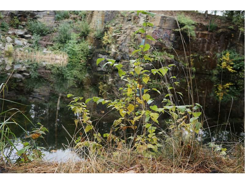 von Phyllonorycter ulmifoliella befallene Birke am 18. Oktober 2015 im Steinbruch Horka bei Kamenz (© Friedmar Graf)( Bild vergrößern)