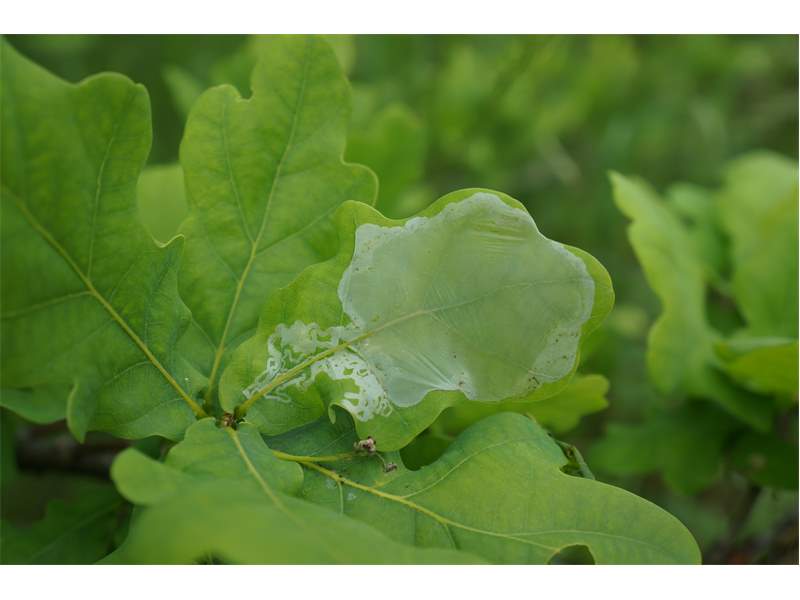 Blasenmine an Eichengebüsch (Quercus robur). Stausee Bautzen, 14.05.2020