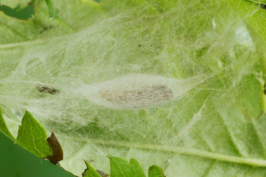 Swammerdamia compunctella als Larve im Mai 2013 auf dem Lausche Kammweg im Zittauer Gebirge gefunden. Puppe im Gespinnst