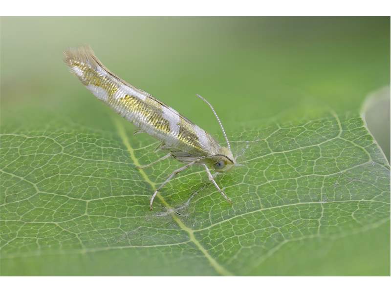 Die Larve von Argyresthia goedartella lebt im Frühjar in den Kätzchen von Birke (F. Graf)