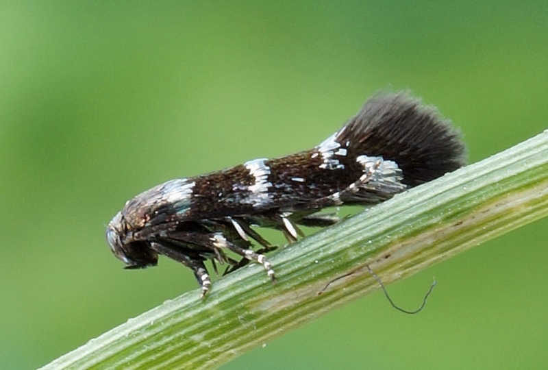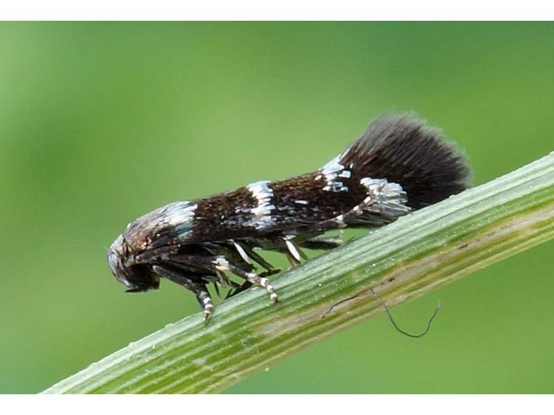 Der kleine Falter mit einer Sitzlänge von 3-3,5 mm ist im Mai/Juni und August aus den Beständen des Wirbeldostes (Clinopodium vulgare) aufzuscheuchen. Daran lebt auch die Larve, in dem sie die Blätter miniert. (F. Graf)