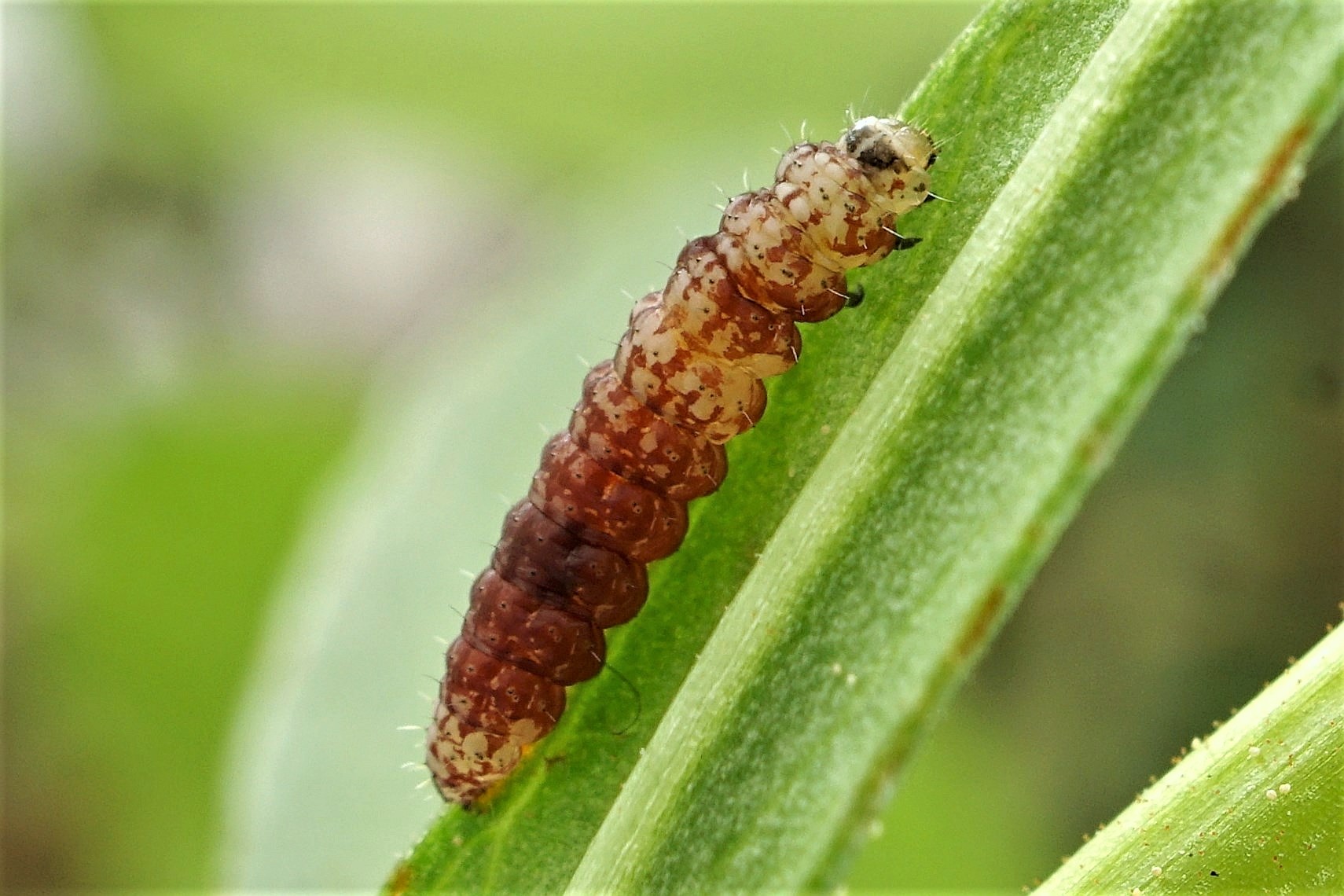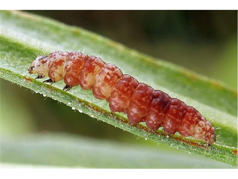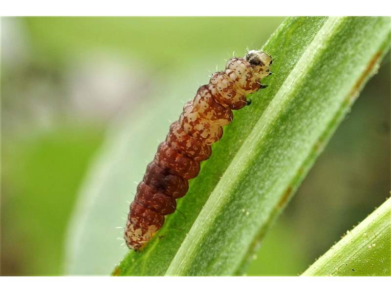 Raupe lebt im Frühjahr in den Herztrieben und später im Stengel von Lysimachia, zum fotografieren heraus geholt.