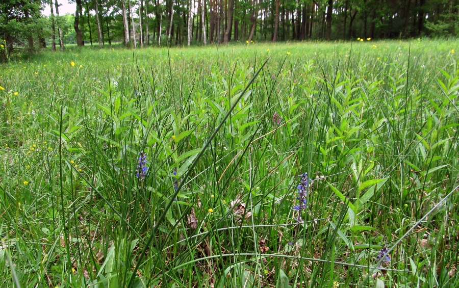 Lebensraum, eine feuchte Wiese mit aufkommenden Gilbweiderich (Lysimachia vulgaris), in dessen Stängel die Raupe im Früjahr lebt.