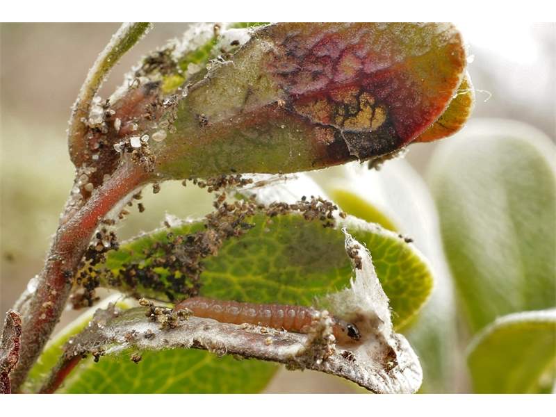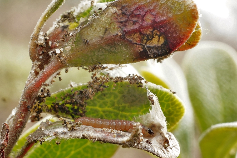 Die Larven von Argyroploce arbutella leben an Bärentraube (Arctostaphylus uva-ursi). Von dieser Pflanze gibt es bei Burg am Nordrand des Scheibesees ein größeres Tieflandvorkommen. Hier findet man auch den kleinen Wickler. Er fliegt in günstigen Jahren ab Ende April in großer Anzahl über die Polster der Bärentraube. Falter, welche ich im Spätsommer sah, gehören sicherlich zu einer zweiten Generation. Die Larven leben in fest versponnenen Blättern der immergrünen Pflanze den Winter über. Sie verpuppen sich ab etwa Mitte April. (F. Graf)