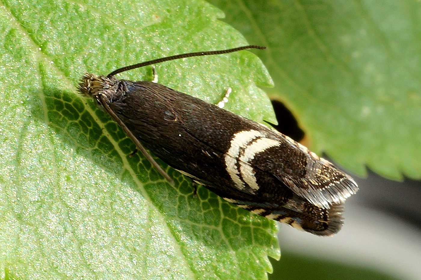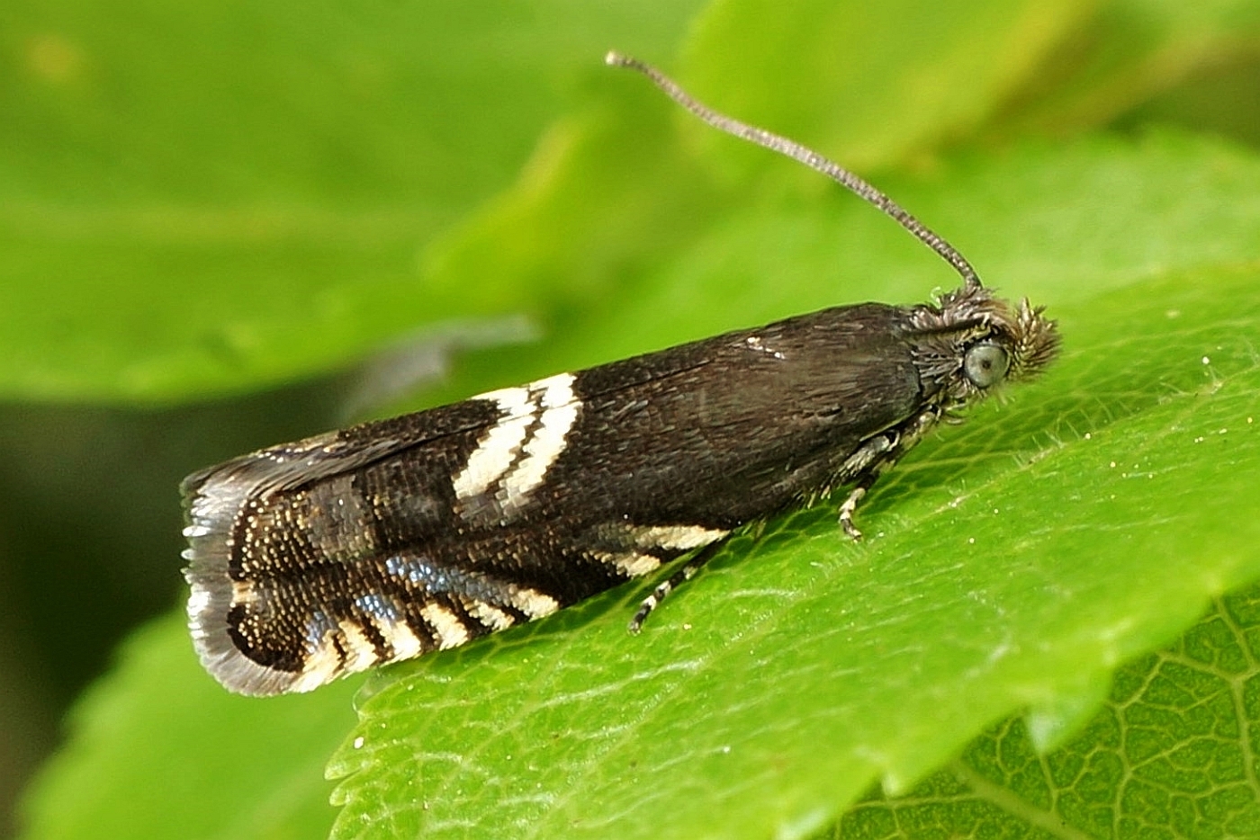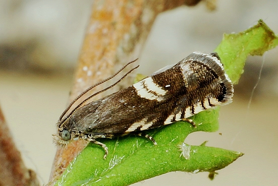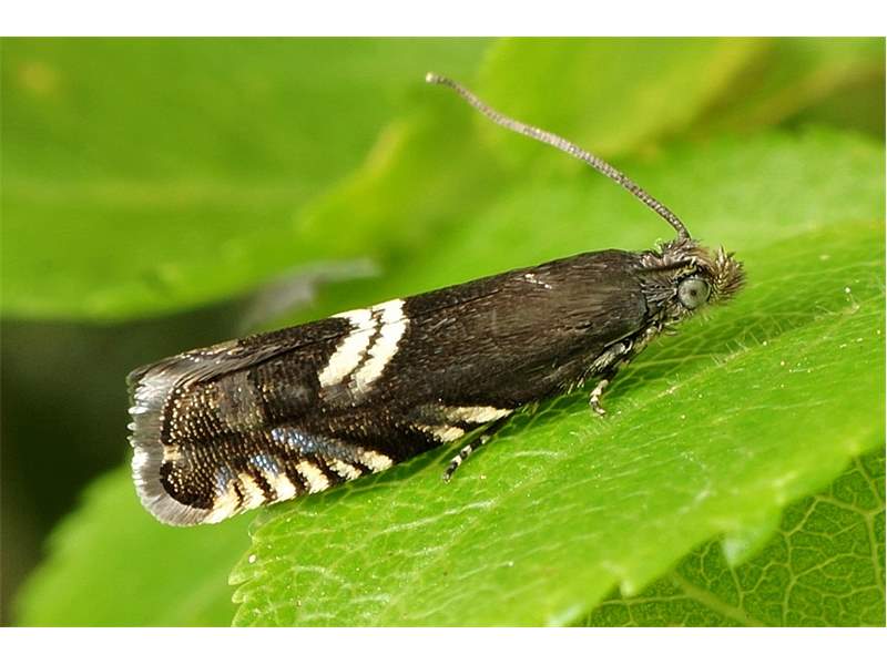 Grapholita coronillana fliegt ab Ende April in den Beständen der Kronwicke. Die Larve lebt ab Juni bis September in den Schoten dieser Pflanze. (F. Graf)