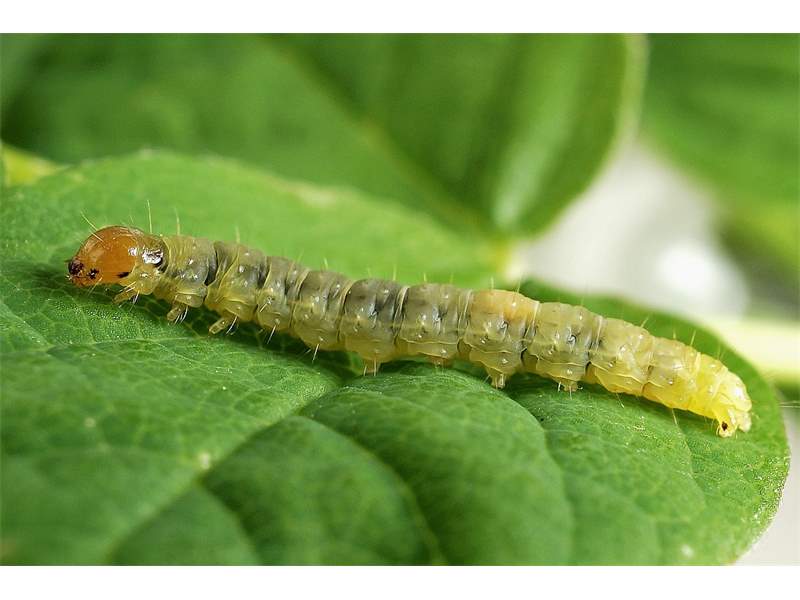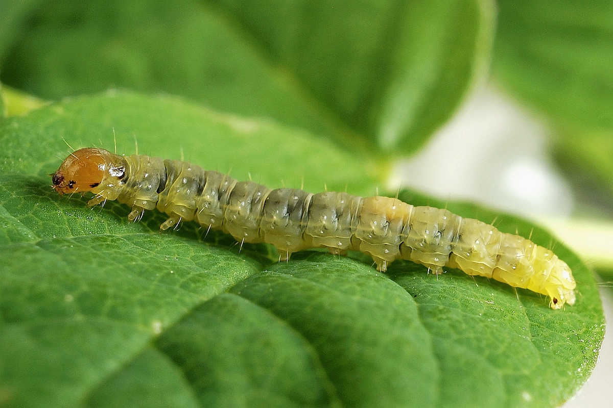 eine Raupe von Acleris laterana, eingeholt am 30. Mai 2015 vom Lausche Kammweg, ca. 700, In leicht versponnenen Blättern der Heidelbeer Sträucher.