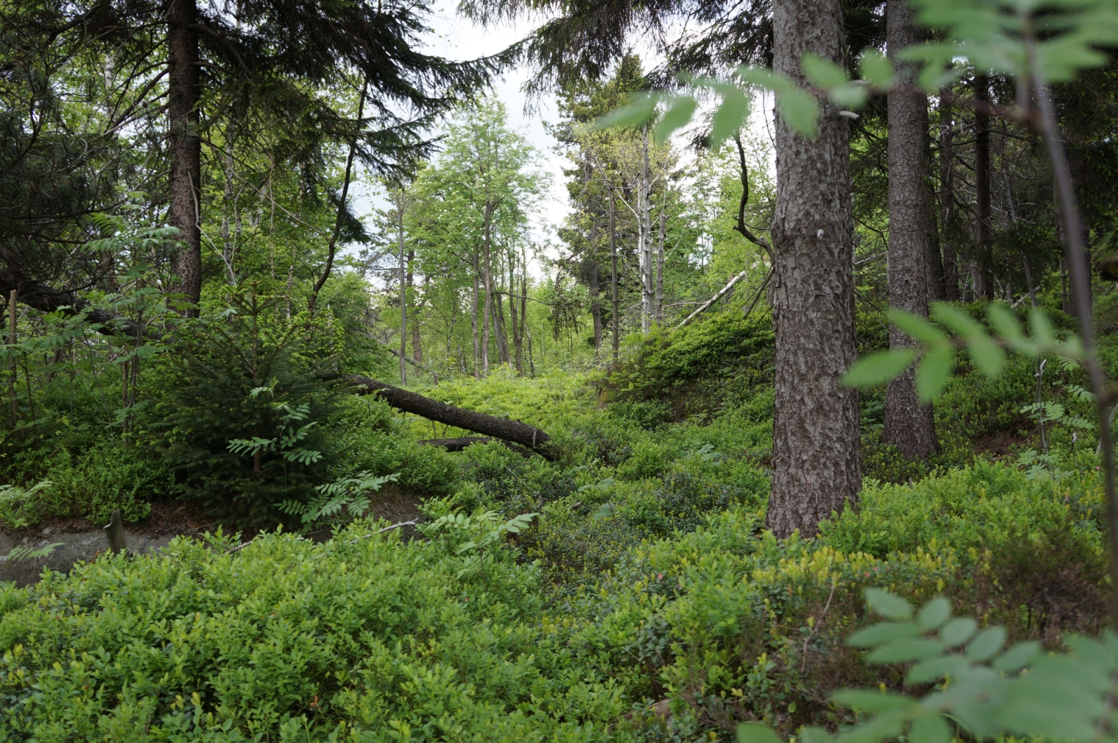 Lebensraum der Raupe von Acleris laterana, Heidelbeerwald am Lausche Kammweg bei ca. 700 m am 30. Mai 2015