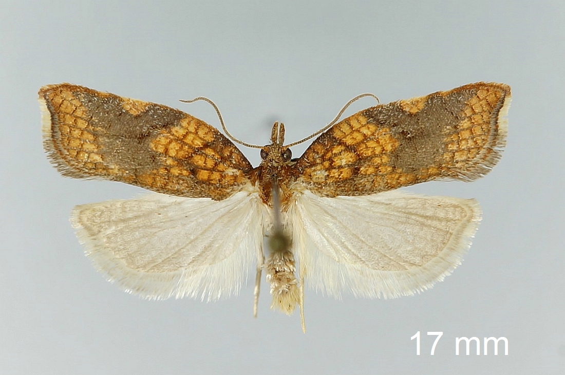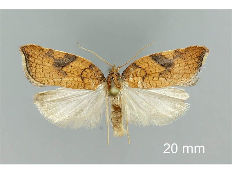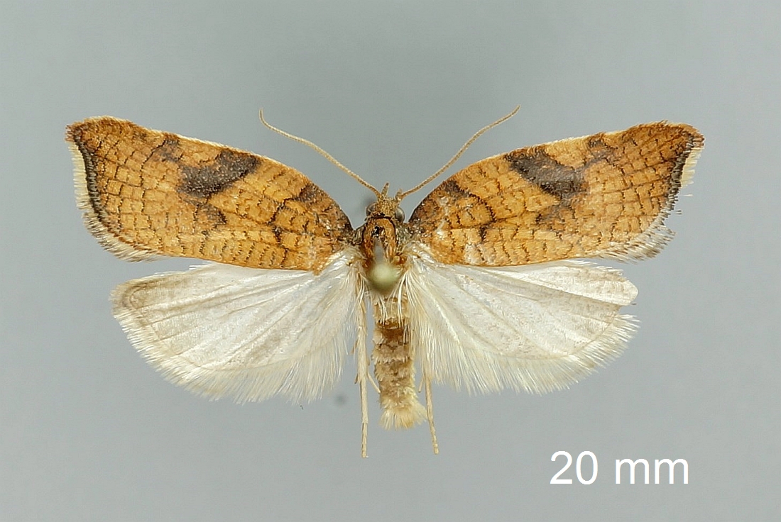 Die Larven von Acleris rhombana fand ich im Mai an vielerlei Gehölzen wie Weißdorn, Wildbirne, Vogelkirsche, Schlehe und Eberesche. Die Falter erscheinen dann erst im Spätsommer ab Ende August. (F. Graf)
