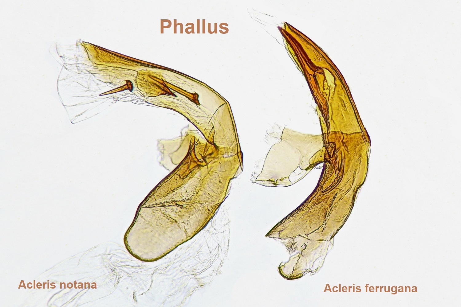 Gegenüberstellung Phallus von Acleris ferrugana und Acleris notana