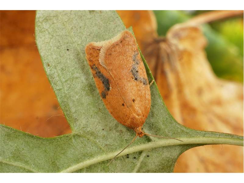 Acleris ferrugana (Rostgelber Eichenwickler) am 25. September in einem Feldgehölz mit Eichen bei Guttau