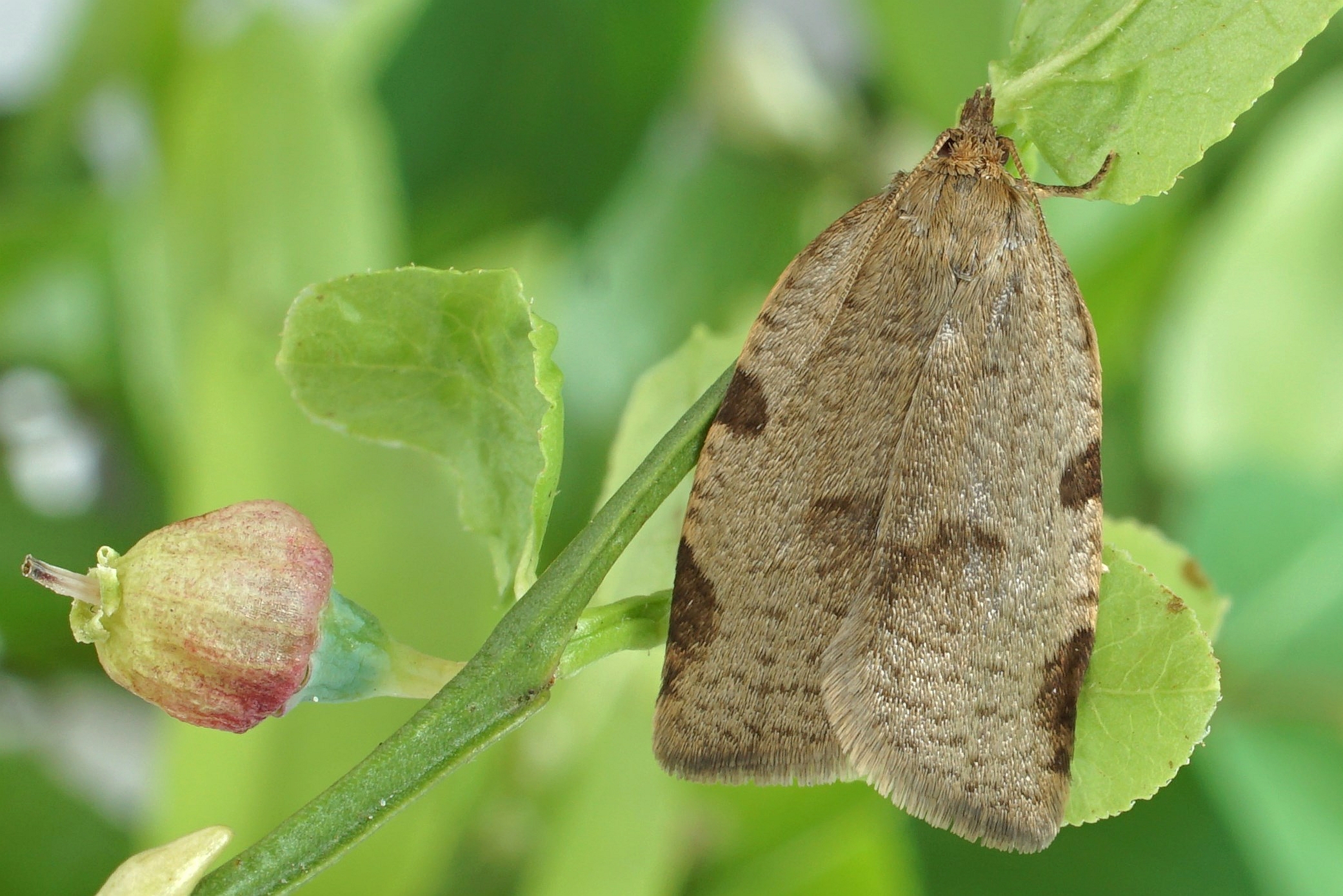 Lozotaenia forsterana ist eine Art der feuchten Waldstellen.