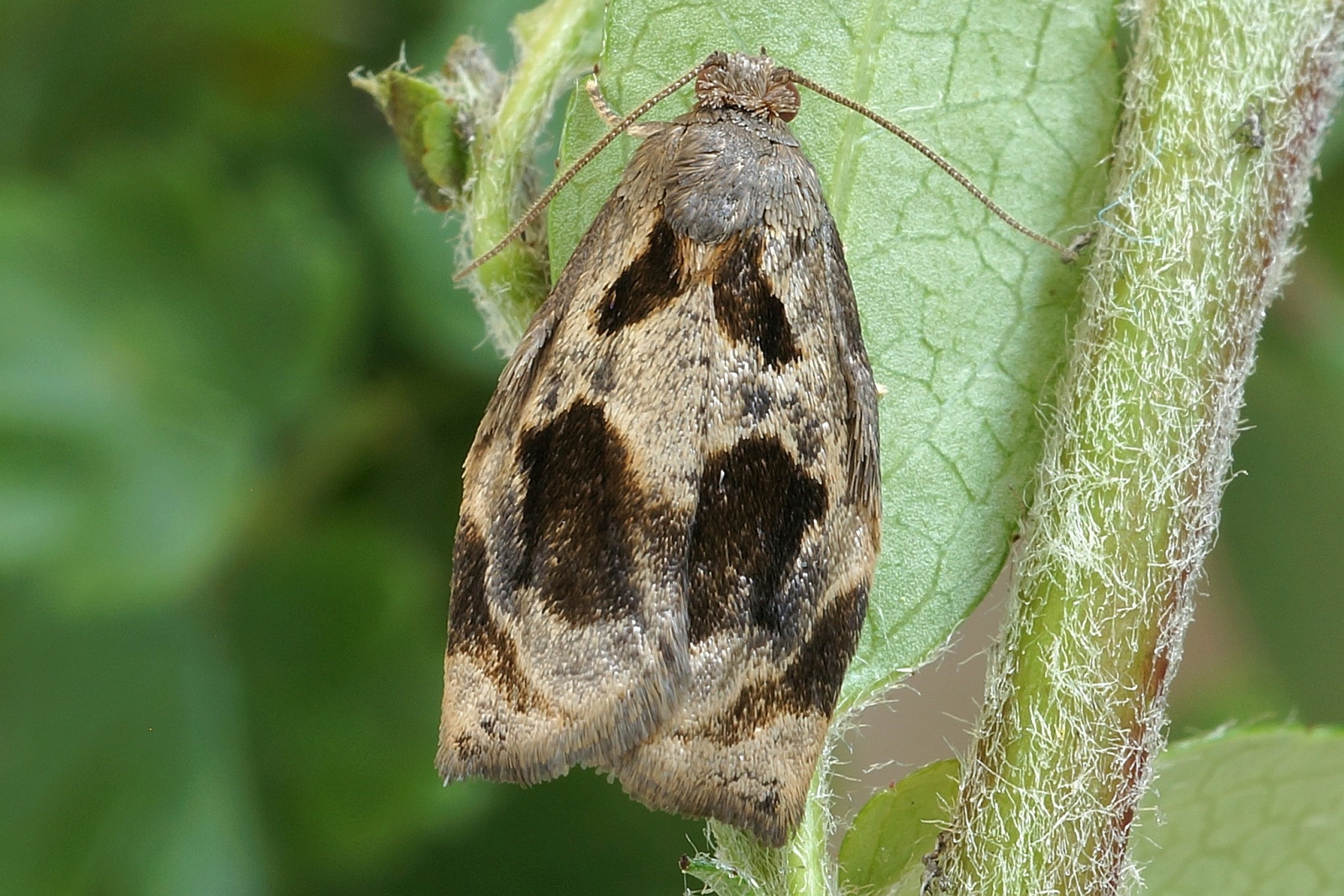 Vorderflügel beider Geschlechter bräunlich, ohne gelbliche Einmischung; die kastanienbraune Linie vor dem Saum breit auf den Vorderrand treffend; beim Männchen reicht die Mittelbinde nicht bis zum Vorderrand (Unterschied zu allen anderen Archips-Arten), beim Weibchen ist diese durchgehend vom Vorder- bis zum Hinterrand.