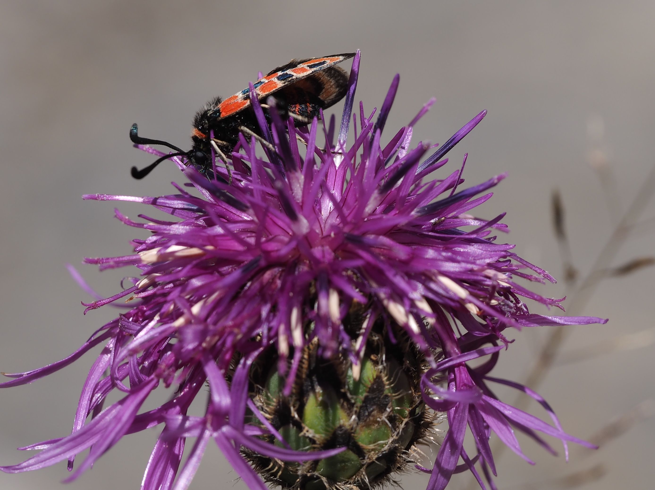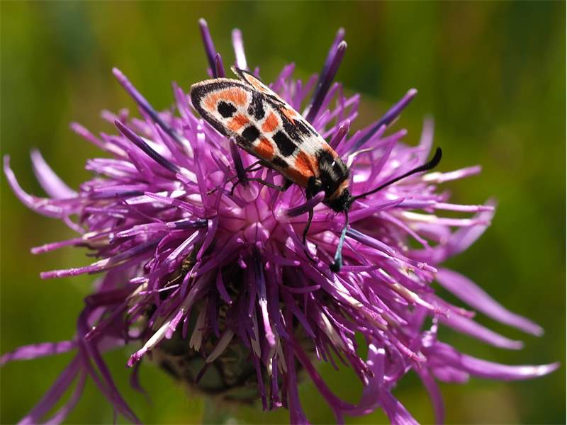 Ähnliche Art: Esparsetten-Widderchen (Zygaena carniolica) auf dem Prothorax mit zwei weißen Querstreifen.