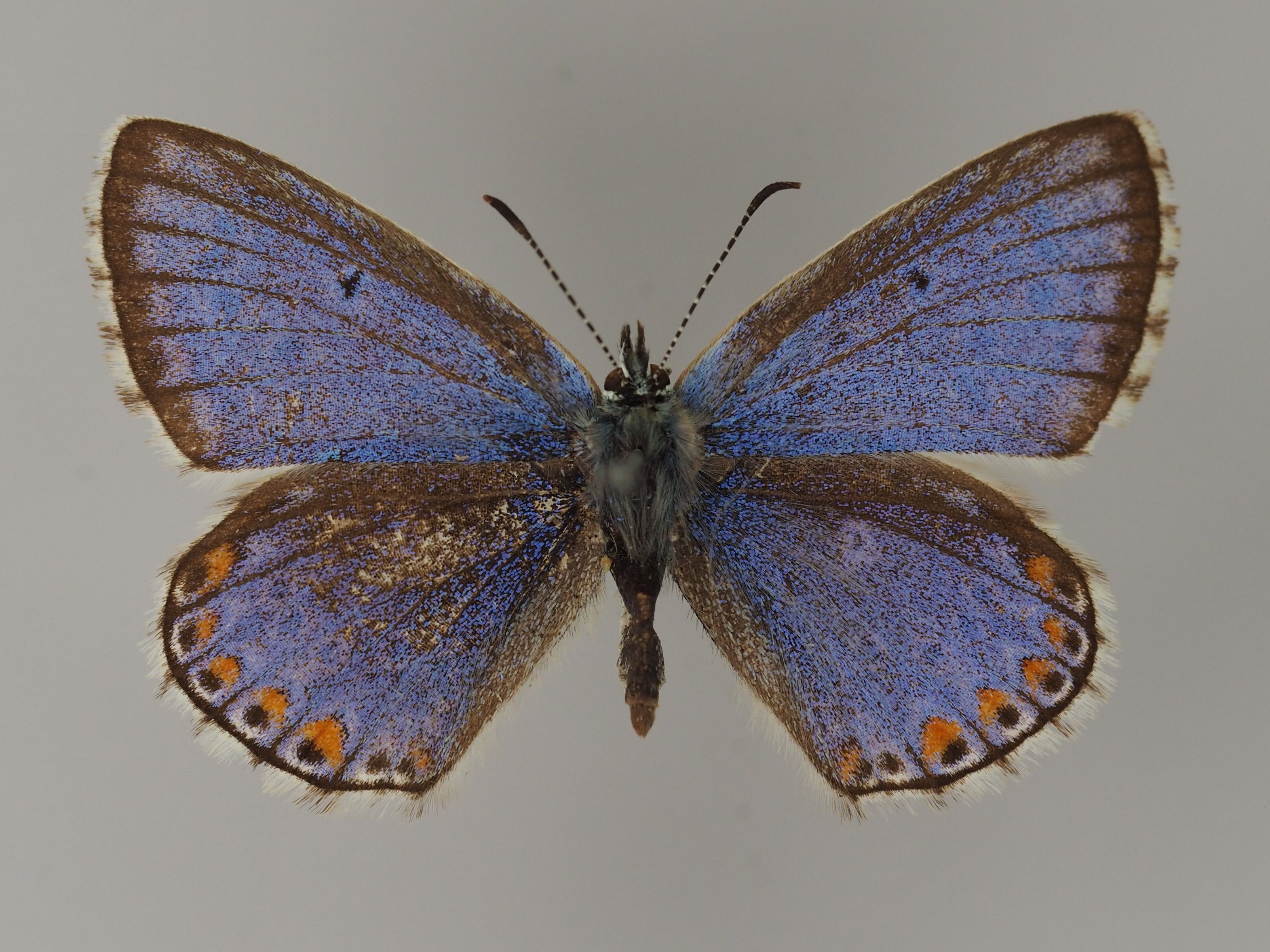 Weibchen des Himmelblauen Bläulings aus Nordhausen (Thüringen). Senckenberg Museum für Tierkunde Dresden.