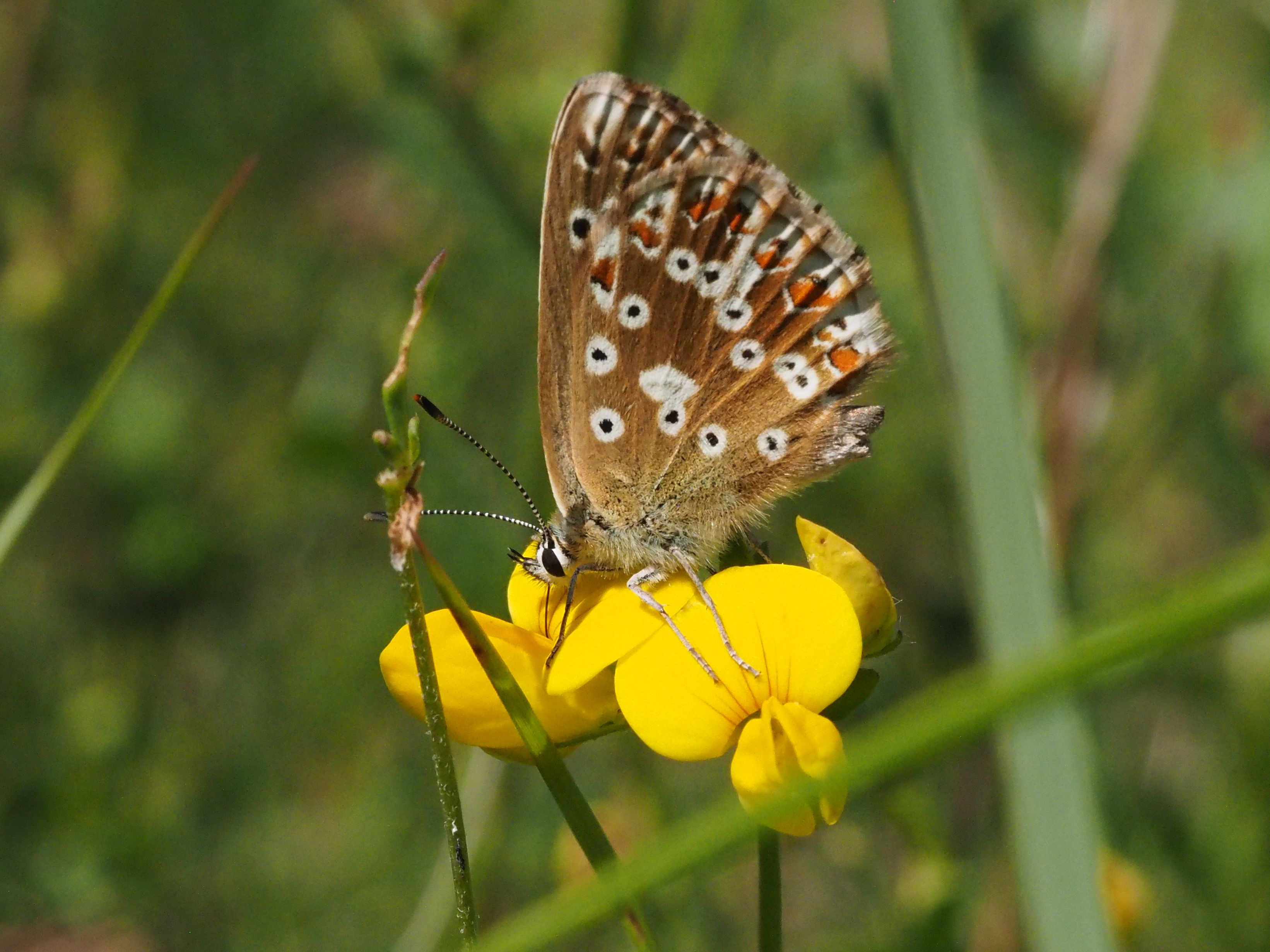 Langanhaltend saugen die Falter (im Bild ein Weibchen) an gelb blühenden Schmetterlingsblütengewächsen, insbesondere an dem reichlich vorhandenen Hornklee. Juli 2017 bei Neustadt (Spree)
