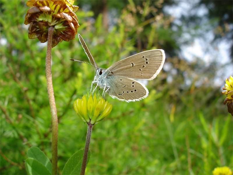 Ähnliche Art: Beim Dunklen Wiesenknopf-Ameisenbläuling (Phengaris nausithous) die Flügelunterseiten dunkler braun und die Fransen hellbraun.