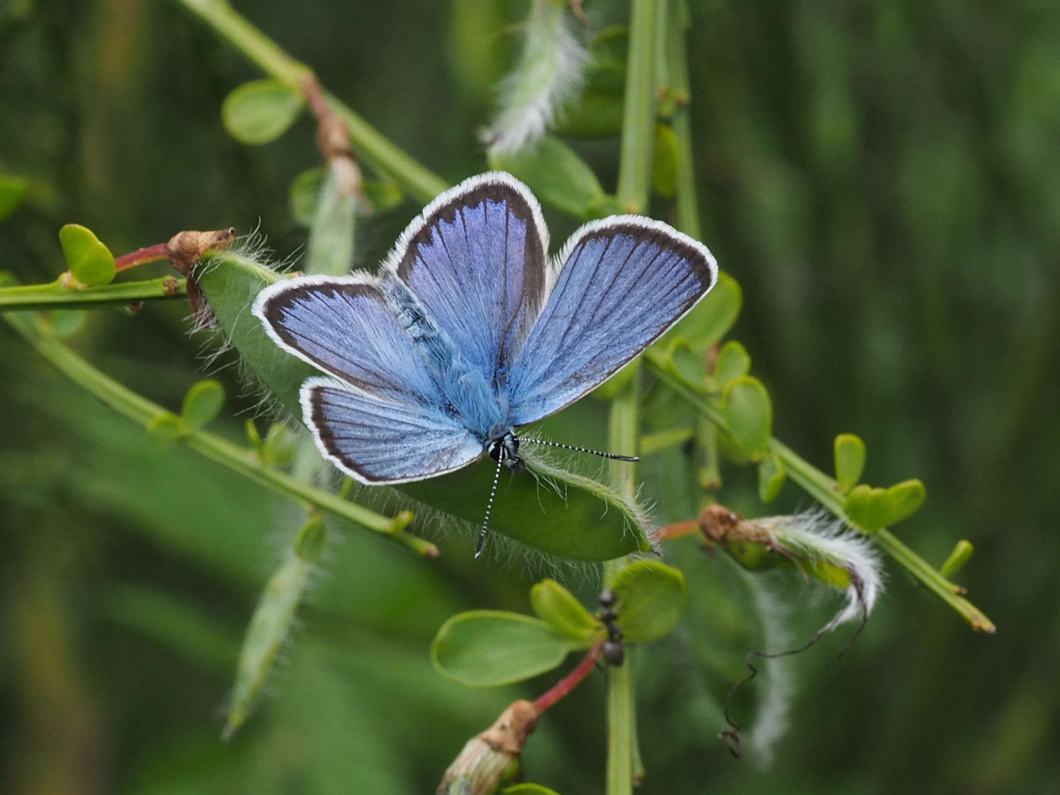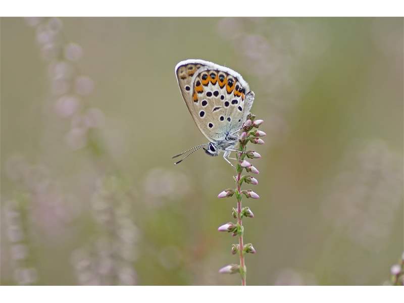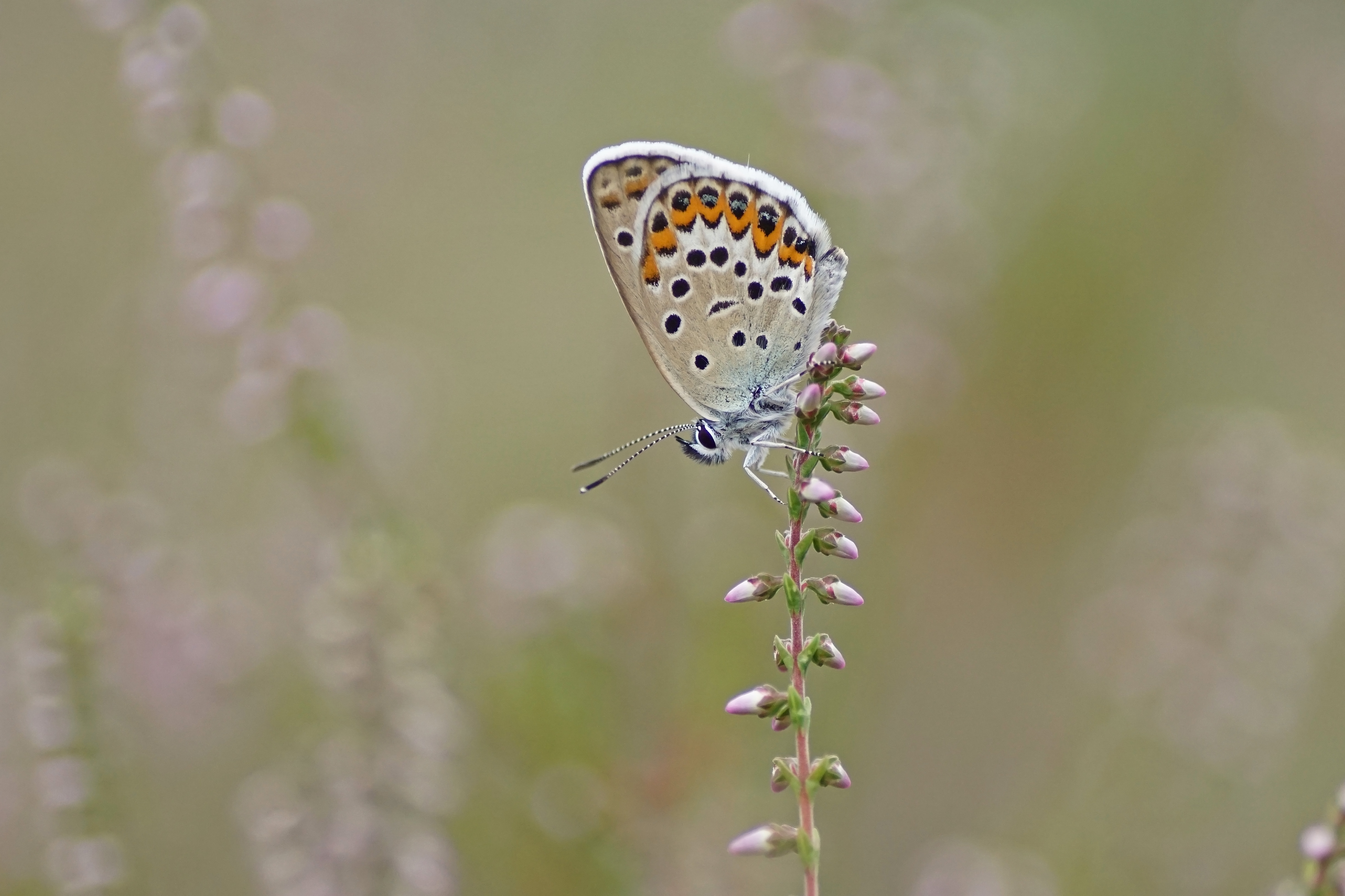 Männchen des Ginster-Silberfleckbläulings am 31.07.2019, Göbelner Heide.