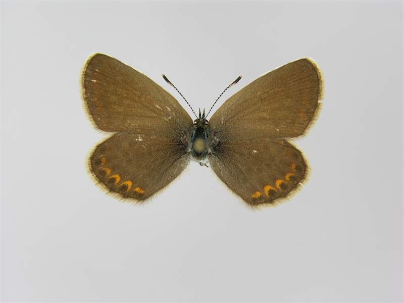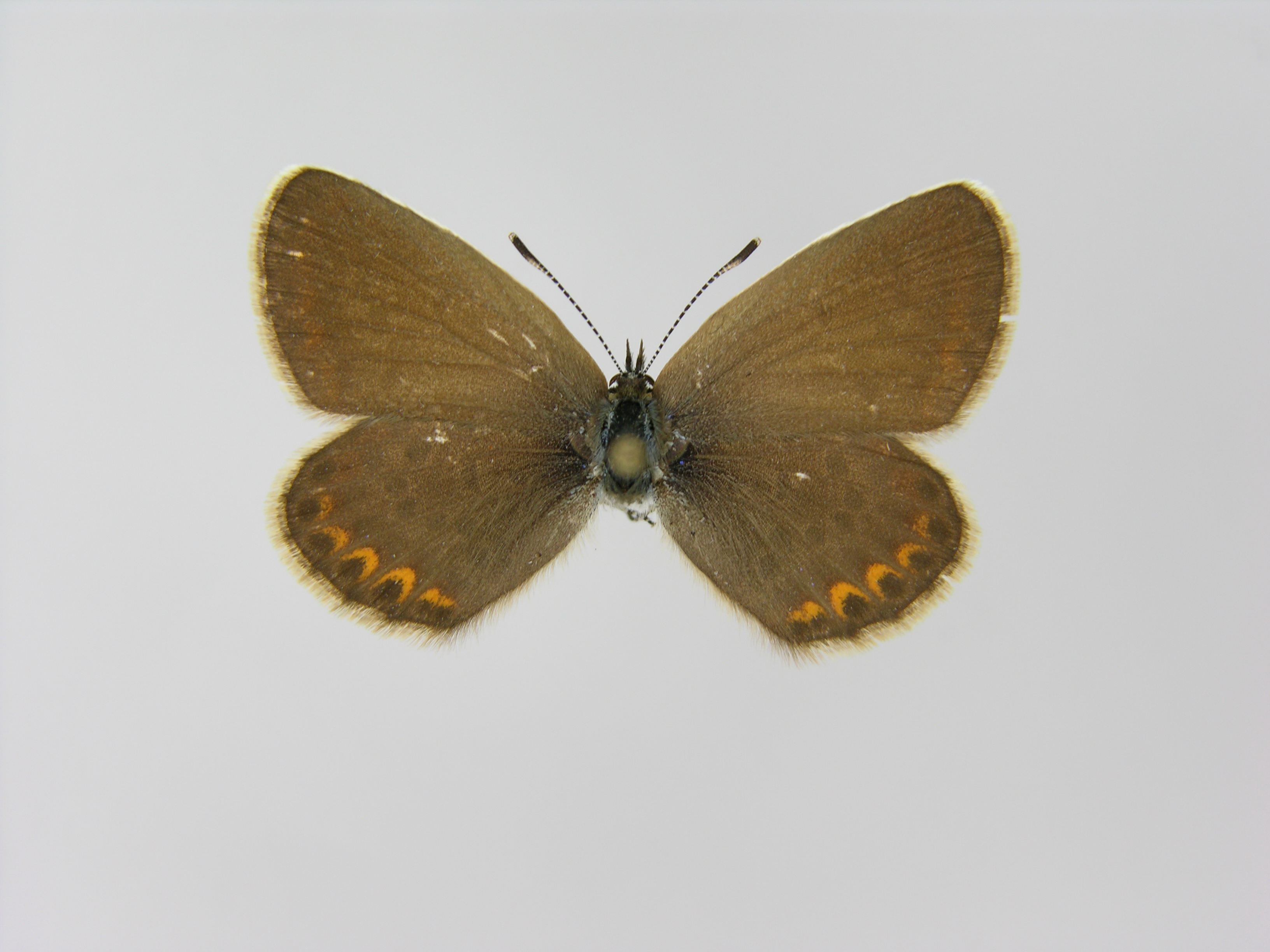 Plebejus idas, Flügeloberseiten des Weibchens. Dresden-Klotzsche, 05.07.1981, Barkowski leg., prep. Nuss 1052, Senckenberg Museum für Tierkunde Dresden