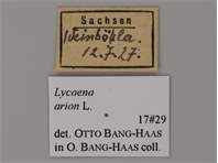 Männchen des Quendel-Ameisenbläulings aus Schlottwitz/Osterzgebirge, vor 1930, leg. R. Zerling. Coll. Senckenberg Museum für Tierkunde Dresden
