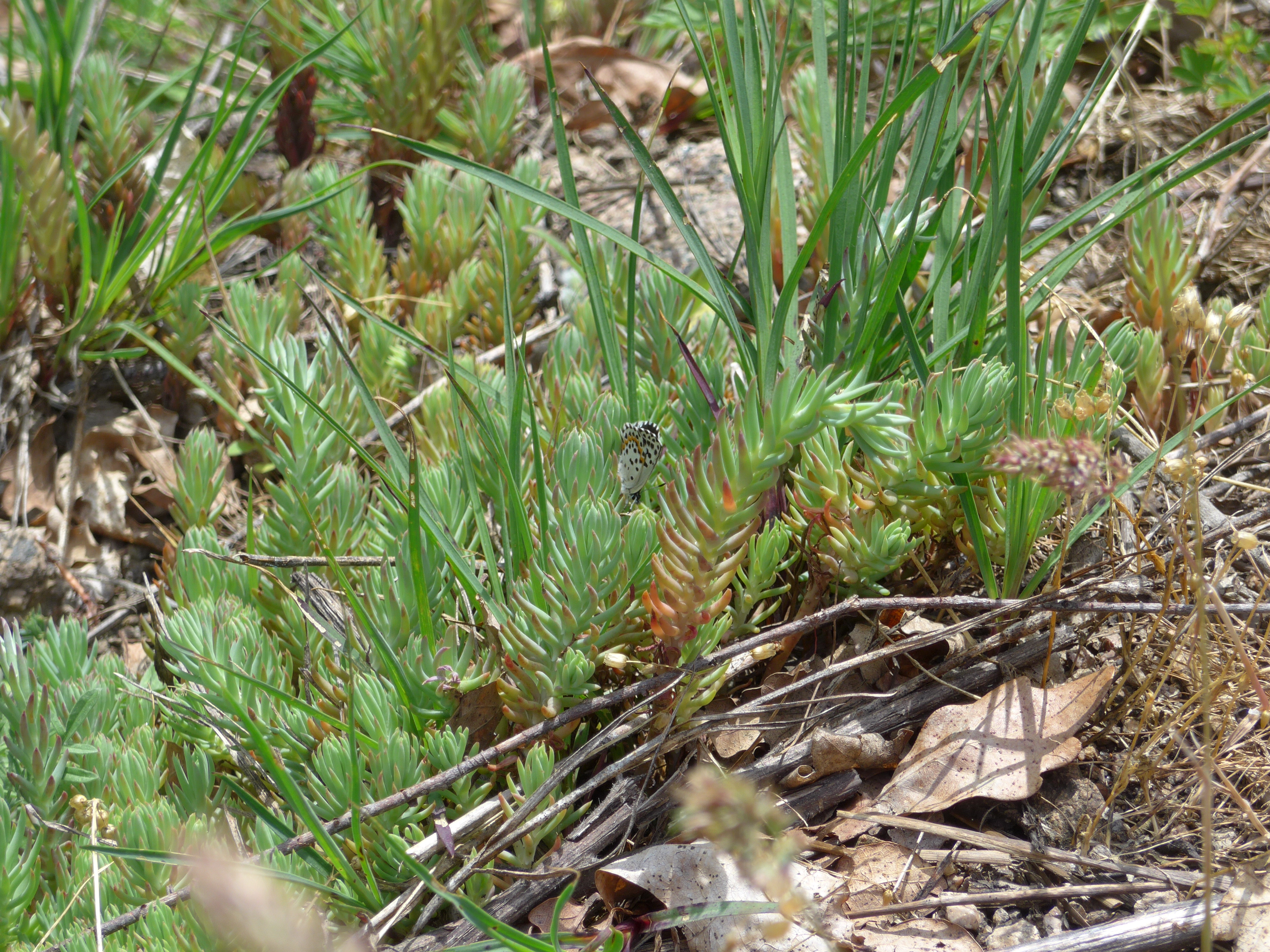 Scolitantides orion-Ei an Sedum sexangulare im Mai 2018 in Radebeul (© Franziska Bauer)( Bild vergrößern)