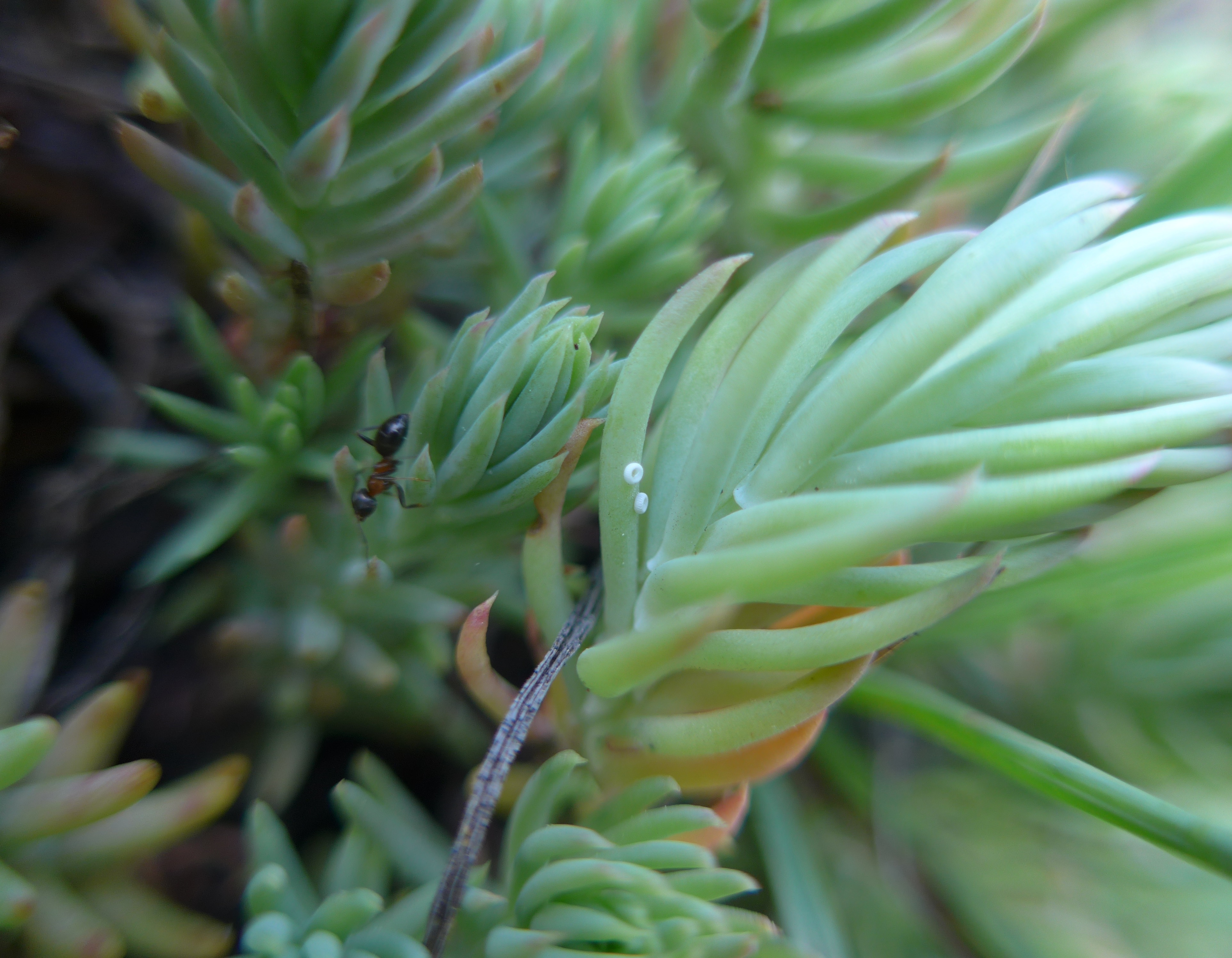Eiablage an Felsen-Fetthenne. Radebeul, Mai 2021