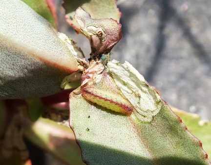 Eiablage an Felsen-Fetthenne. Radebeul, Mai 2021 (© Kai Schwabe)( Bild vergrößern)