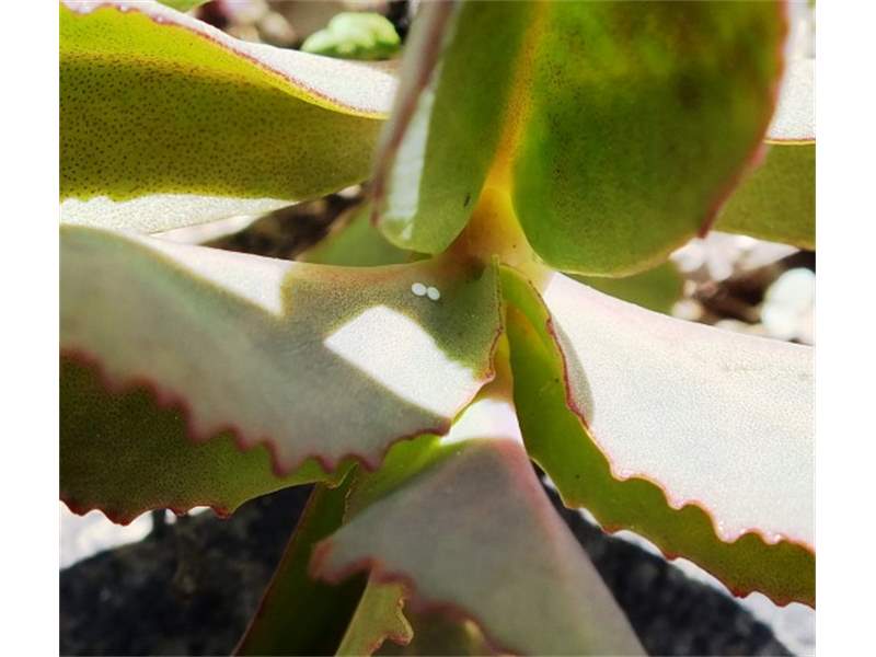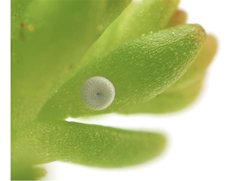 Eier des Fetthennen-Bläuling an Sedum maximum in der Umgebung von Mittweida, Mai 2016 (© Cordula Schüppel)( Bild vergrößern)