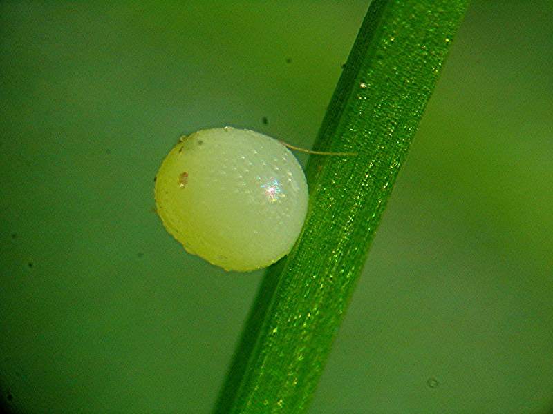 An Carex sylvatica (Waldsegge) abgelegtes Ei (16.8.2009, Talsperrengebiet Eibenstock) (© Matthias Hartung)( Bild vergrößern)