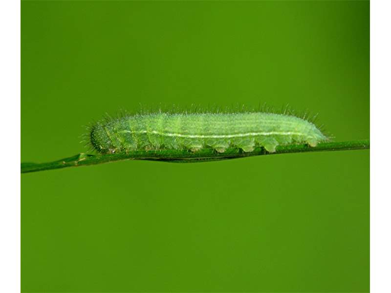 Larve am 8.9.2009 an Carex sylvatica gezüchtet (gezogen aus dem Ei vom 16.8.2009, Talsperrengebiet Eibenstock) (© Matthias Hartung)( Bild vergrößern)