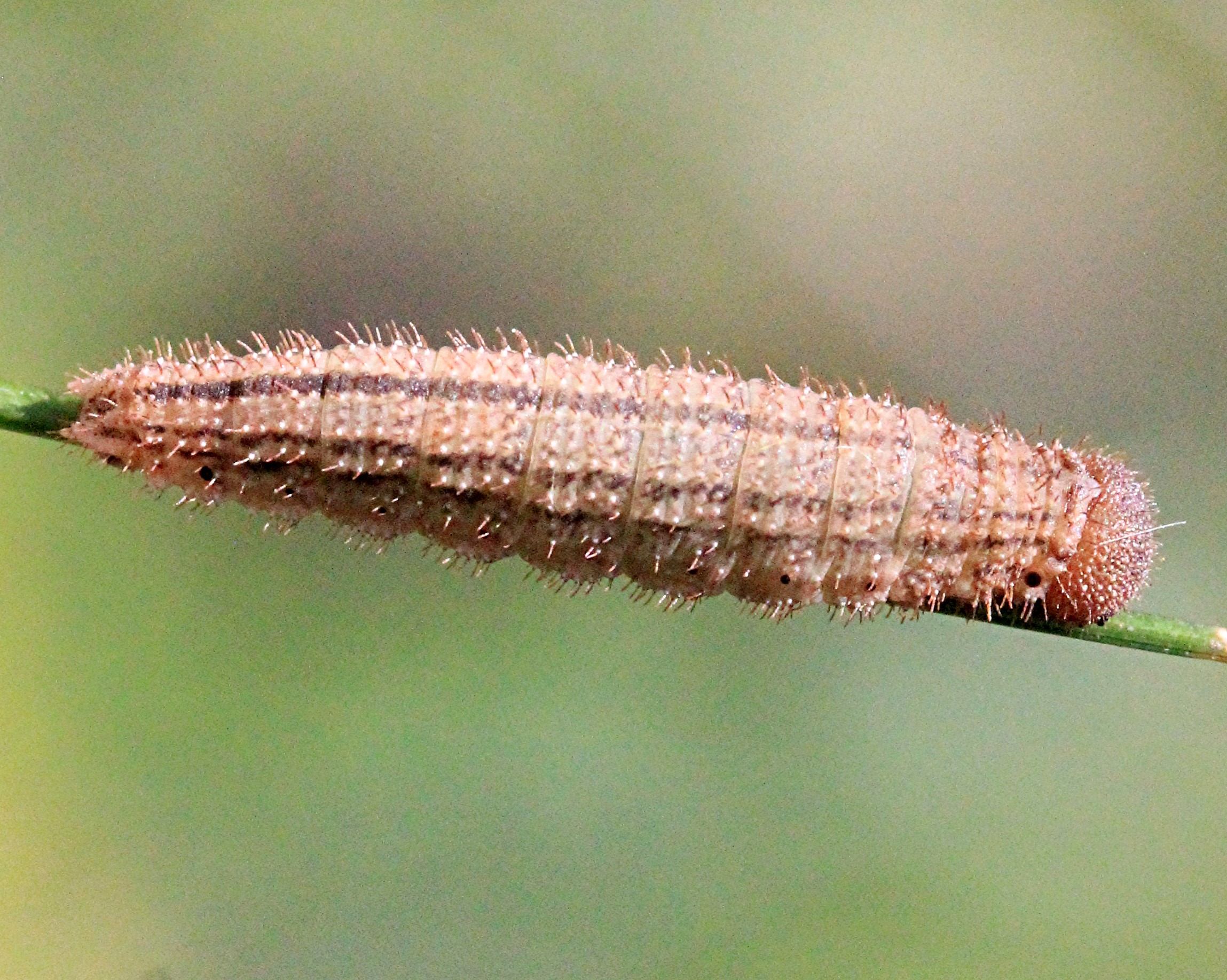 Erwachsene Larve am 6.6.2015 von E. aethiops, die aus dem Ei vom 31.8.2014 bei Kössen Österreich gezüchtet wurde
