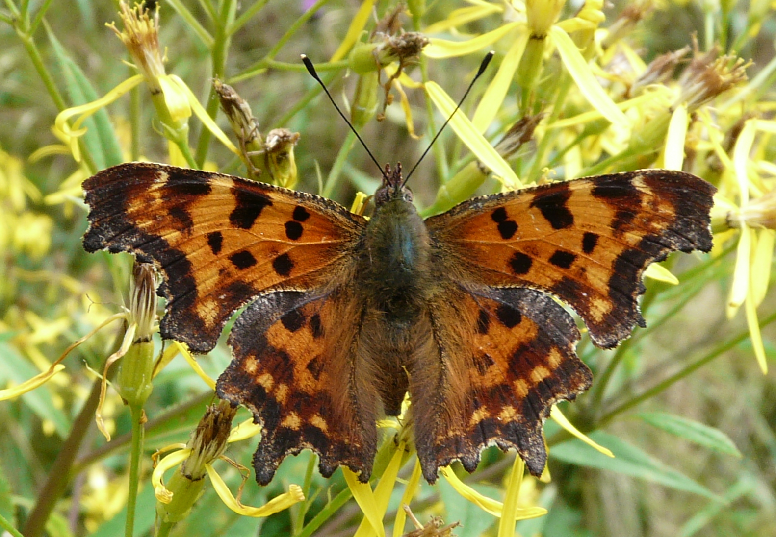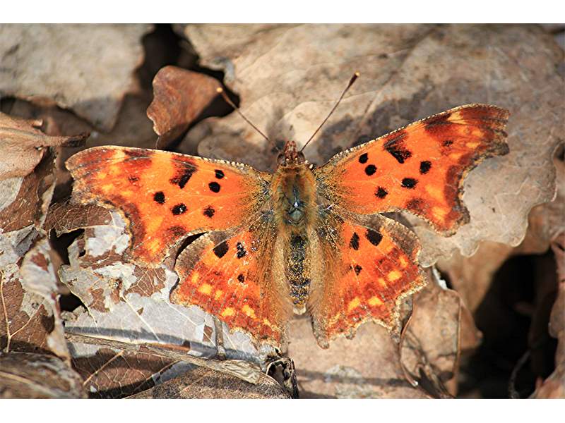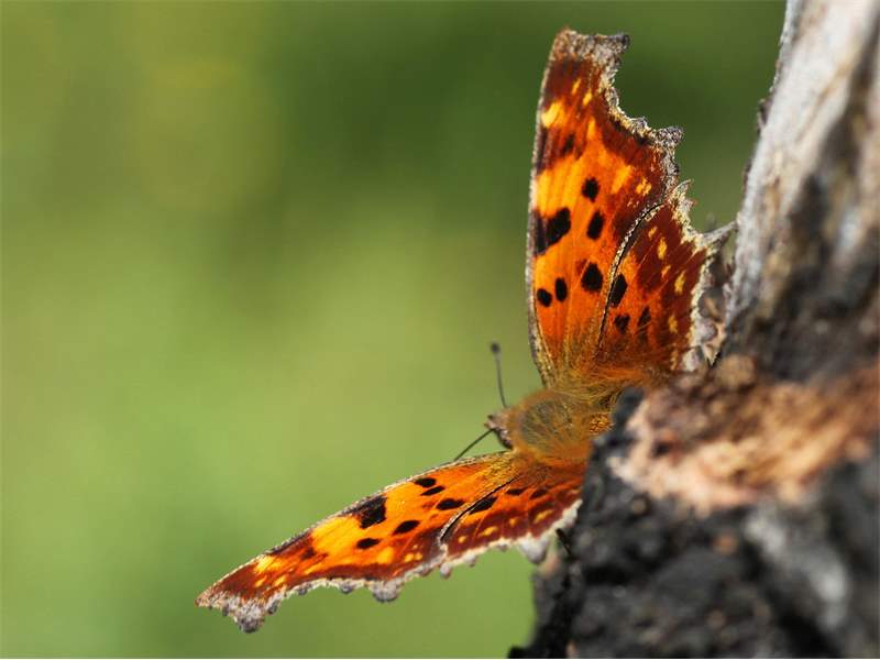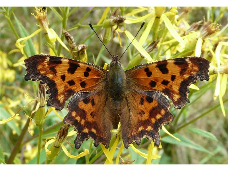 Der C-Falter ist unverwechselbar aufgrund seiner gefurchten Flügelaußenränder und des weißen "C" auf der Hinterflügelunterseite.