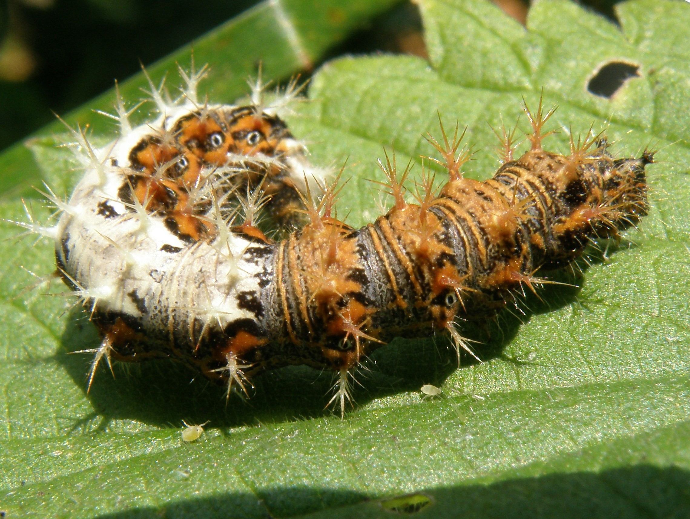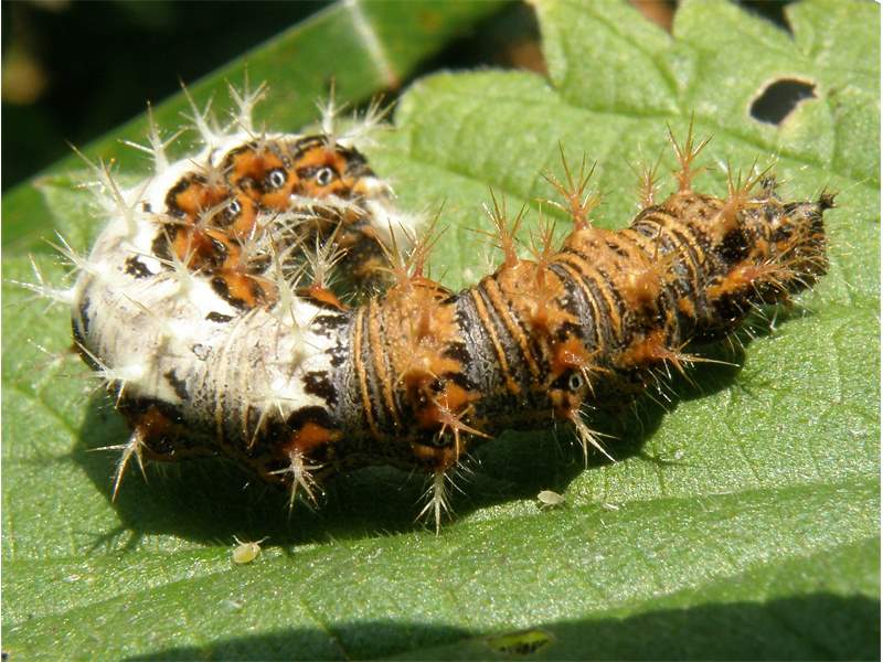 Die Eier werden einzeln oder zu zweien in Abständen abgelegt. Die Larven sind polyphag und fressen an Brennnesseln, Hasel, Ulmen, Hopfen sowie Johannis- und Stachelbeeren. Die Falter saugen im Frühjahr an Blüten von verschiedenen Weiden, im Sommer und Herbst an Fallobst sowie an feuchten Wegstellen, mitunter an Kot und Aas.