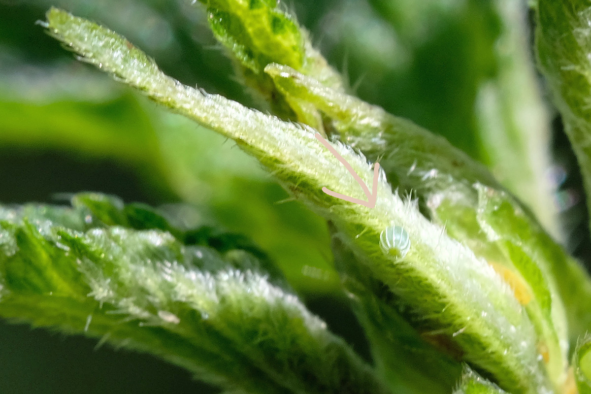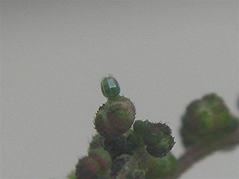 Ei eines Admirals, abgelegt am 18.7. 2004 in Wüstrich bei Nerchau an Brennessel. (© Matthias Hartung)( Bild vergrößern)
