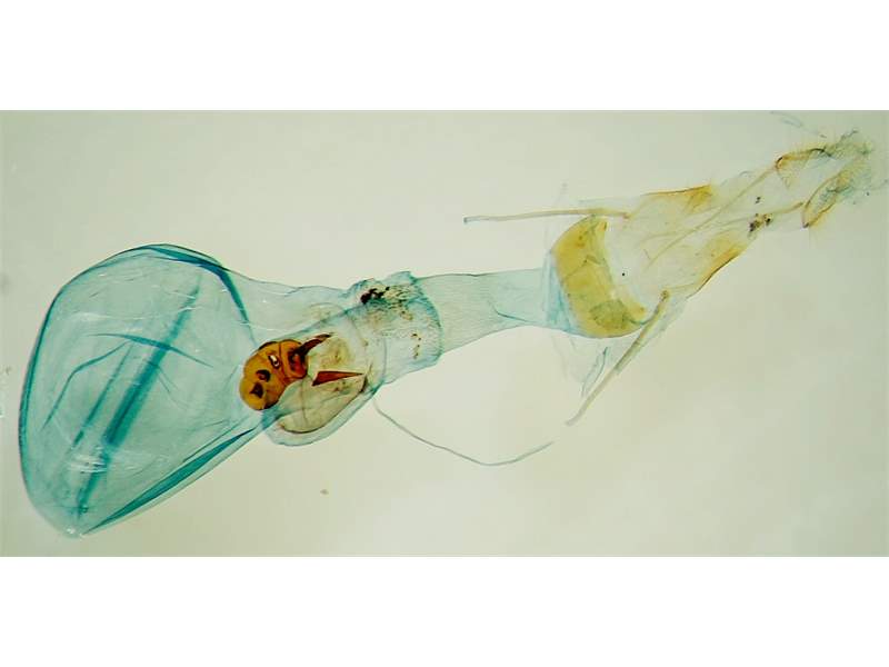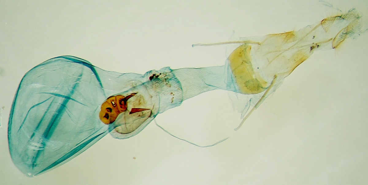 Weibliches Genital von Gymnancyla canella. La Frannqui, Südfrankreich. Nachts am Licht in küstennaher Vegetation, Ende Juli 2017. prep. et det. F. Graf