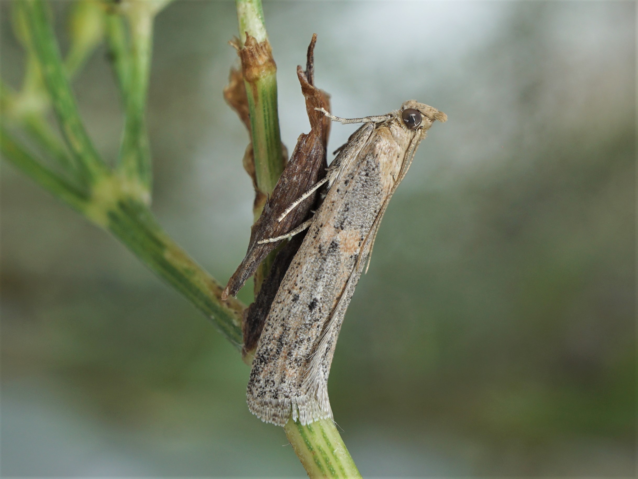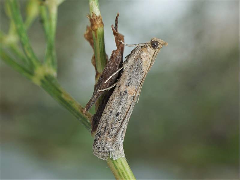 Gymnancyla canella mit weniger dunklen Schuppen und dadurch heller. Eine Genitaluntersuchung zur Artunterscheidung ist empfohlen.