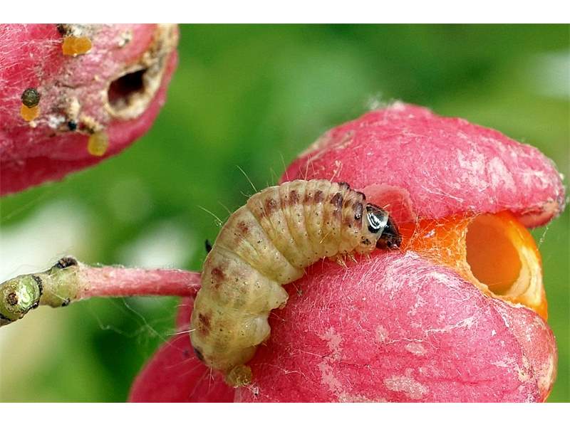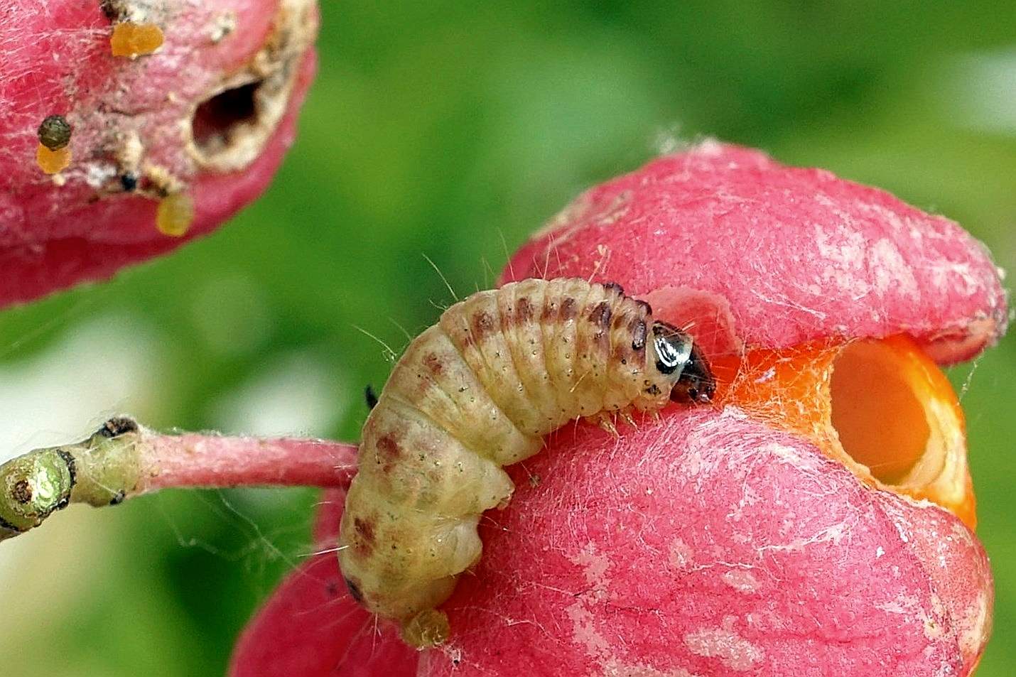 Der Artnachweis erfolgt am besten im Herbst durch die Suche der Larven in den Früchten von Pfaffenhütchen (Euonymus europaeus).