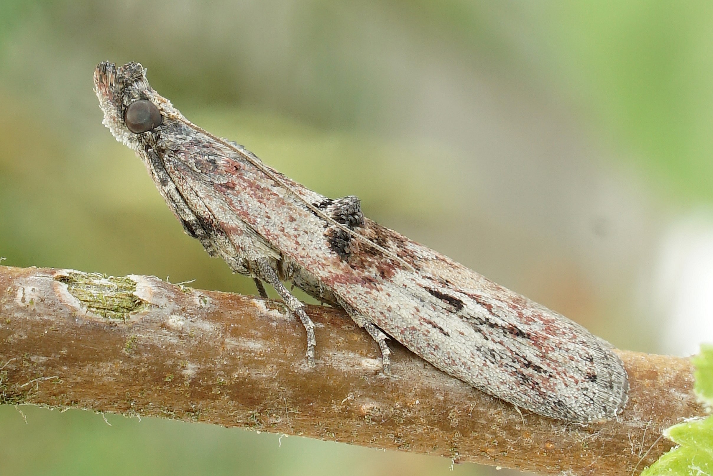 Vorderflügel hellgraubraun, bisweilen mit Rotstich; bei 1/3 und 4/5 jeweils eine der Flügelgrundfarbe entsprechende Querlinie; Basalfeld meistens zumindest an der Basis ziegelrot, distal angrenzend an innere Querlinie ein Band schwarzer abstehender, apikal gewölbter Schuppen, das nicht bis zum Flügelvorderrand reicht; innere Querlinie zu beiden Seiten dunkelbraun und/oder ziegelrot gesäumt; von der äußeren stark gezackten Querlinie ist oft nur der dunkelgraue/dunkelbraune Saum im Mittelfeld erkennbar; äußere Querlinie im Außenfeld bisweilen ziegelrot begrenzt; Mittelfeld mit zwei kurzen schwarzen oder dunkelbraunen Längsstrichen.