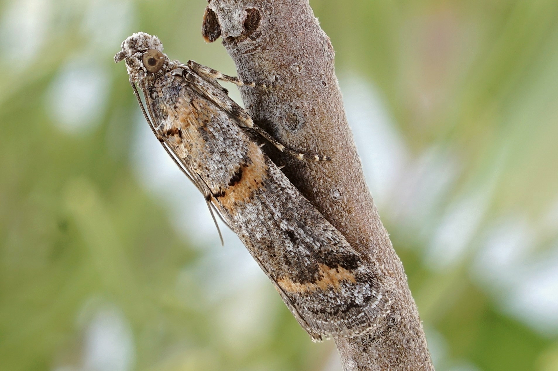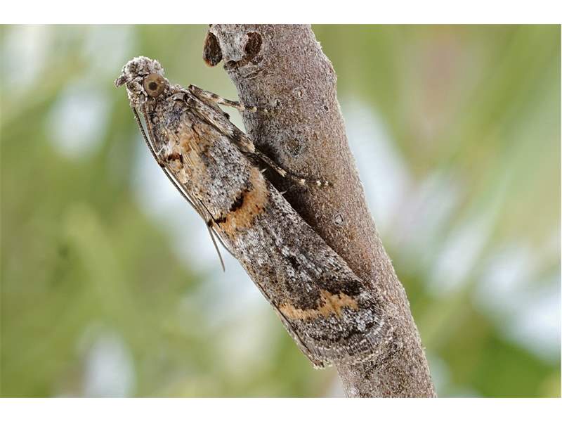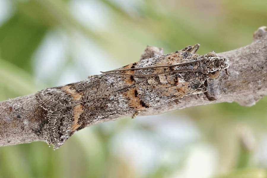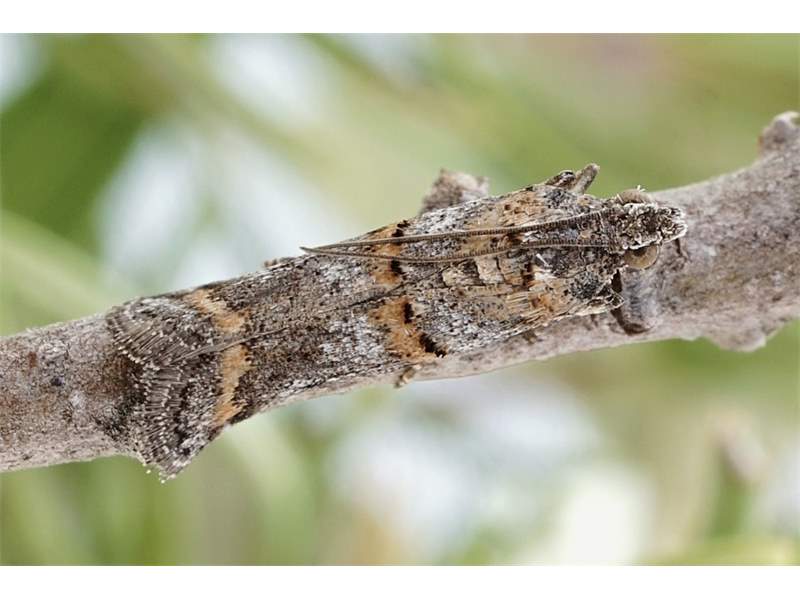 Vorderflügel X–Y mm lang; grau und braun; bei 1/3 und 5/6 jeweils eine rotbraune, schwarzbraun gesäumte Querlinie; Basalfeld grau, am Flügelhinterrand basal rotbraun; Basalfeld mit zwei Büscheln aufrecht stehender schwarzer Schuppen auf der inneren Querlinie; äußere Querlinie mit zwei Ausbuchtungen zum Mittelfeld bei 1/3 und 2/3 ihrer Länge; Mittelfeld hellgrau und graubraun gescheckt, mittig mit zwei schwarzen Punkten; Außenfeld grau, mit schwarzbraunem Schatten kurz vor dem Apex.