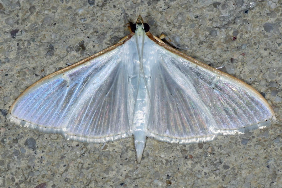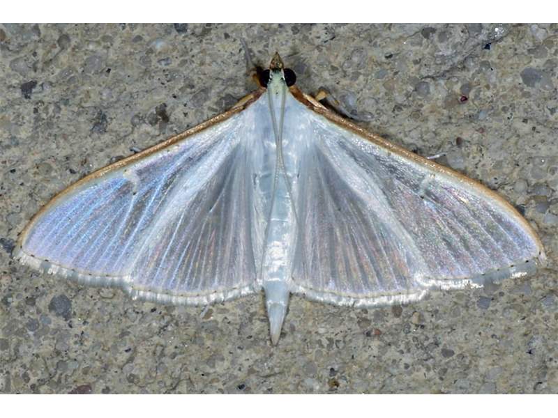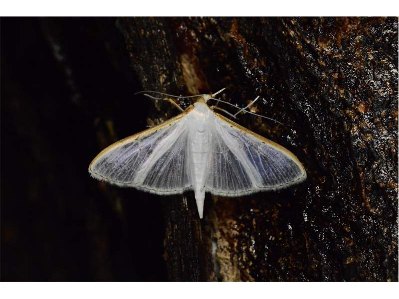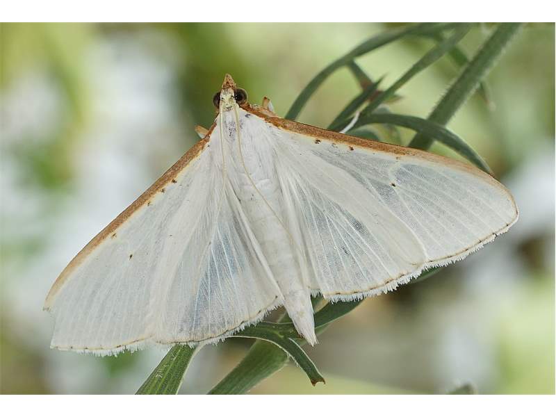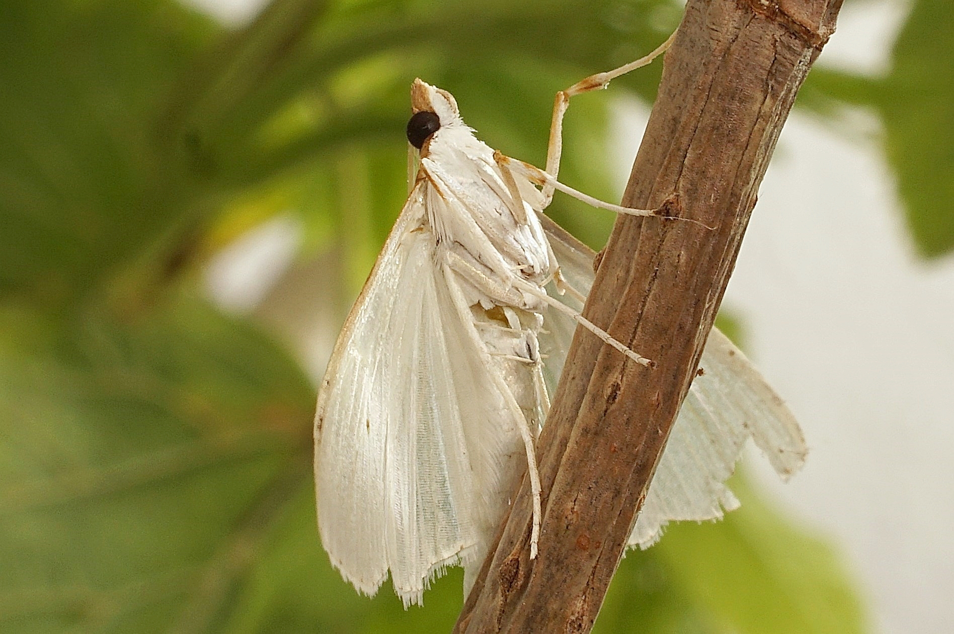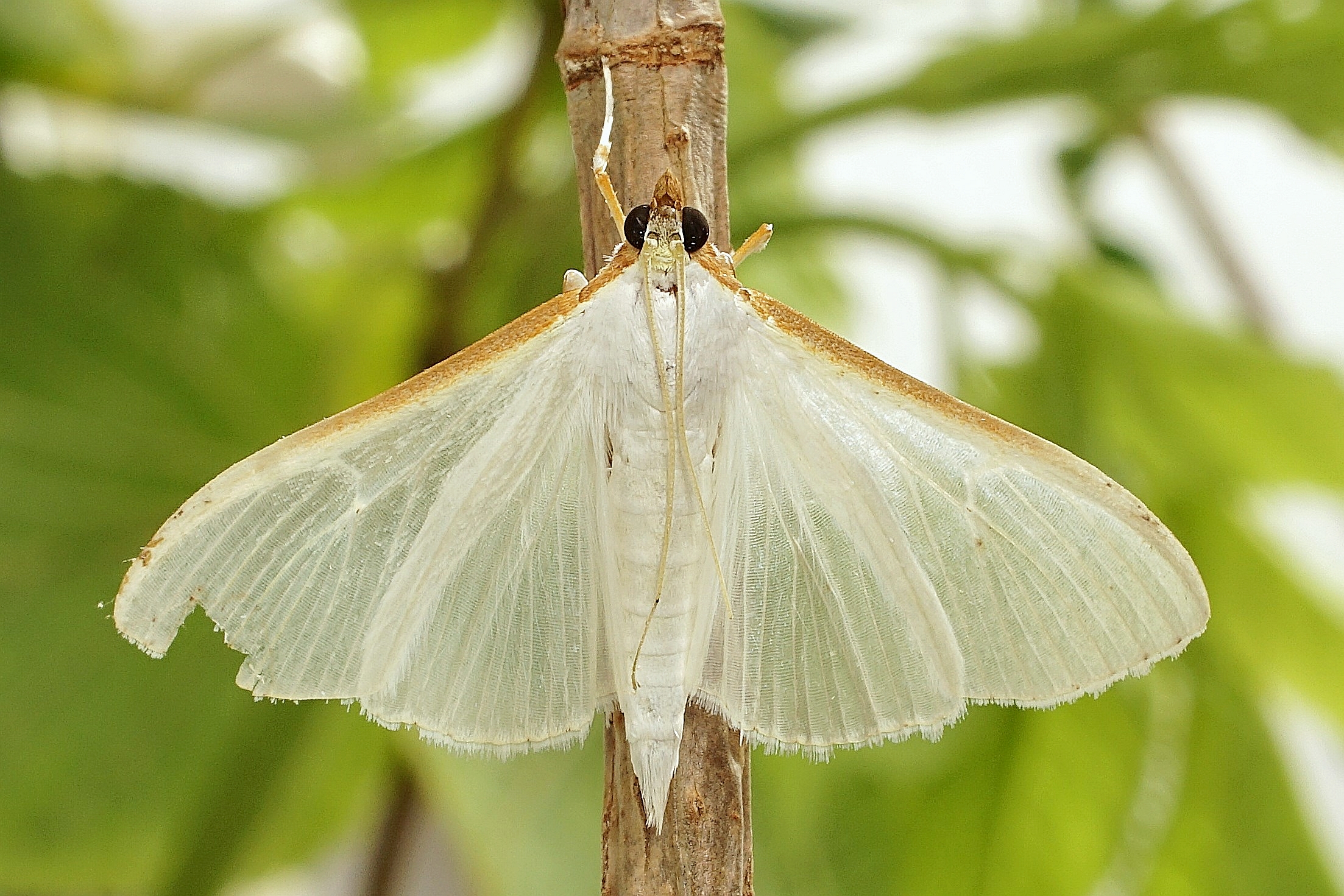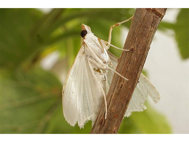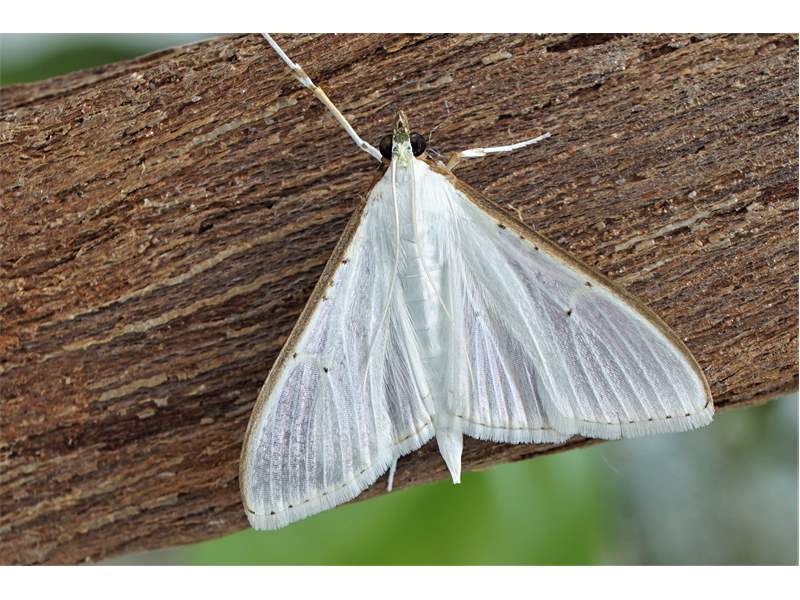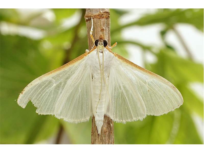 Ähnliche Arten: Cydalima perspectalis besitzt dunkelbraune Flügelränder.