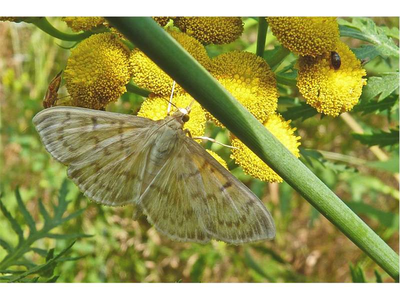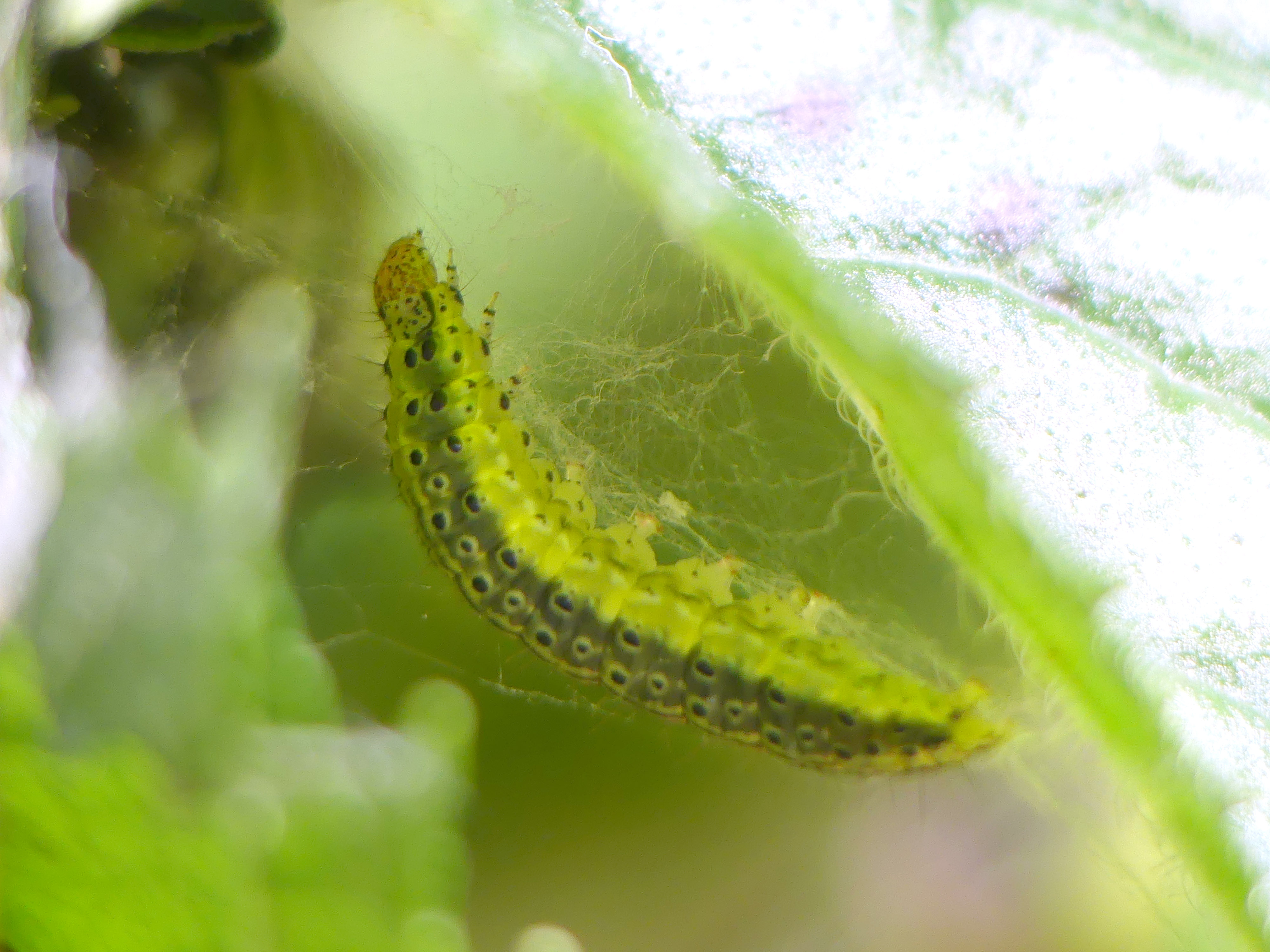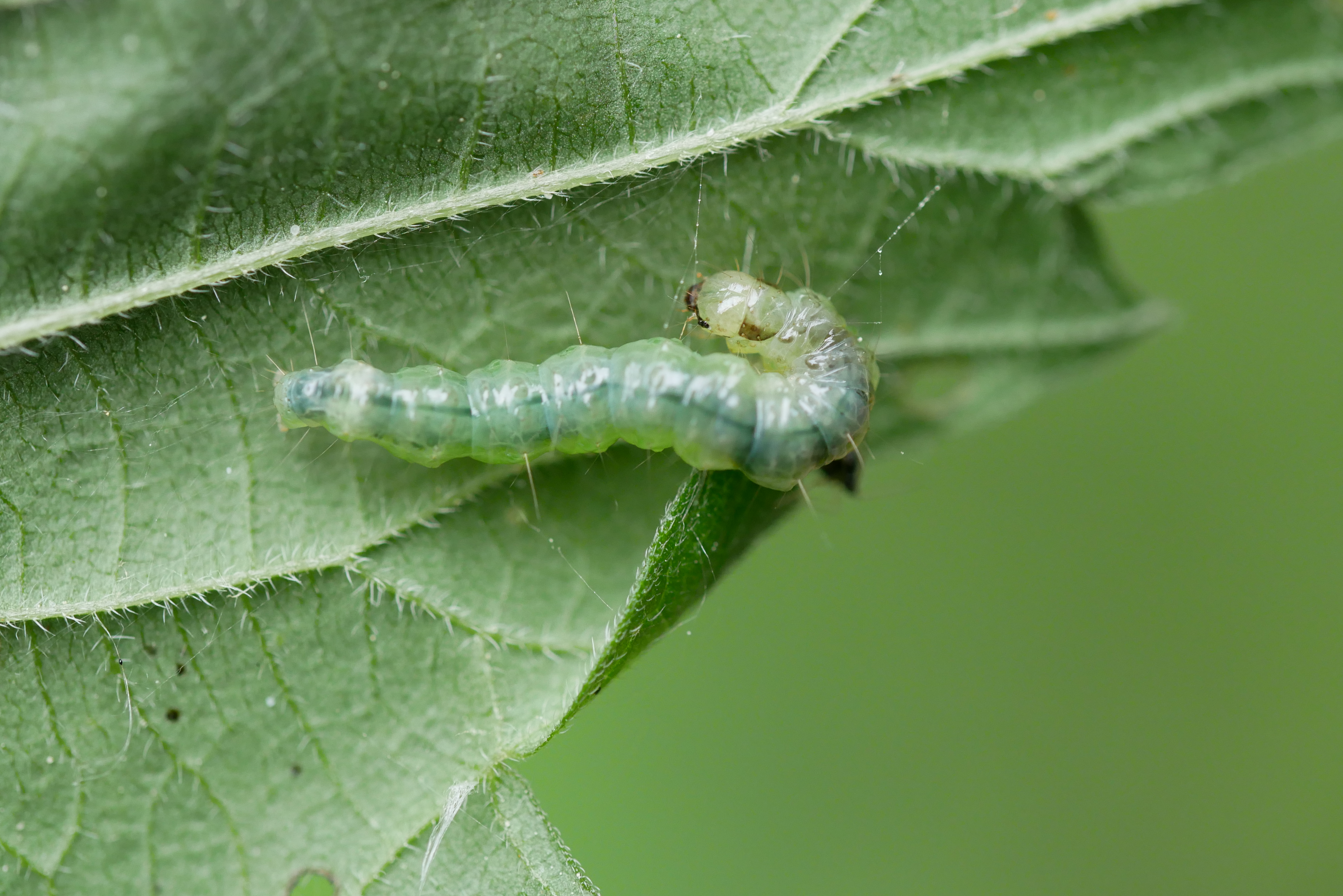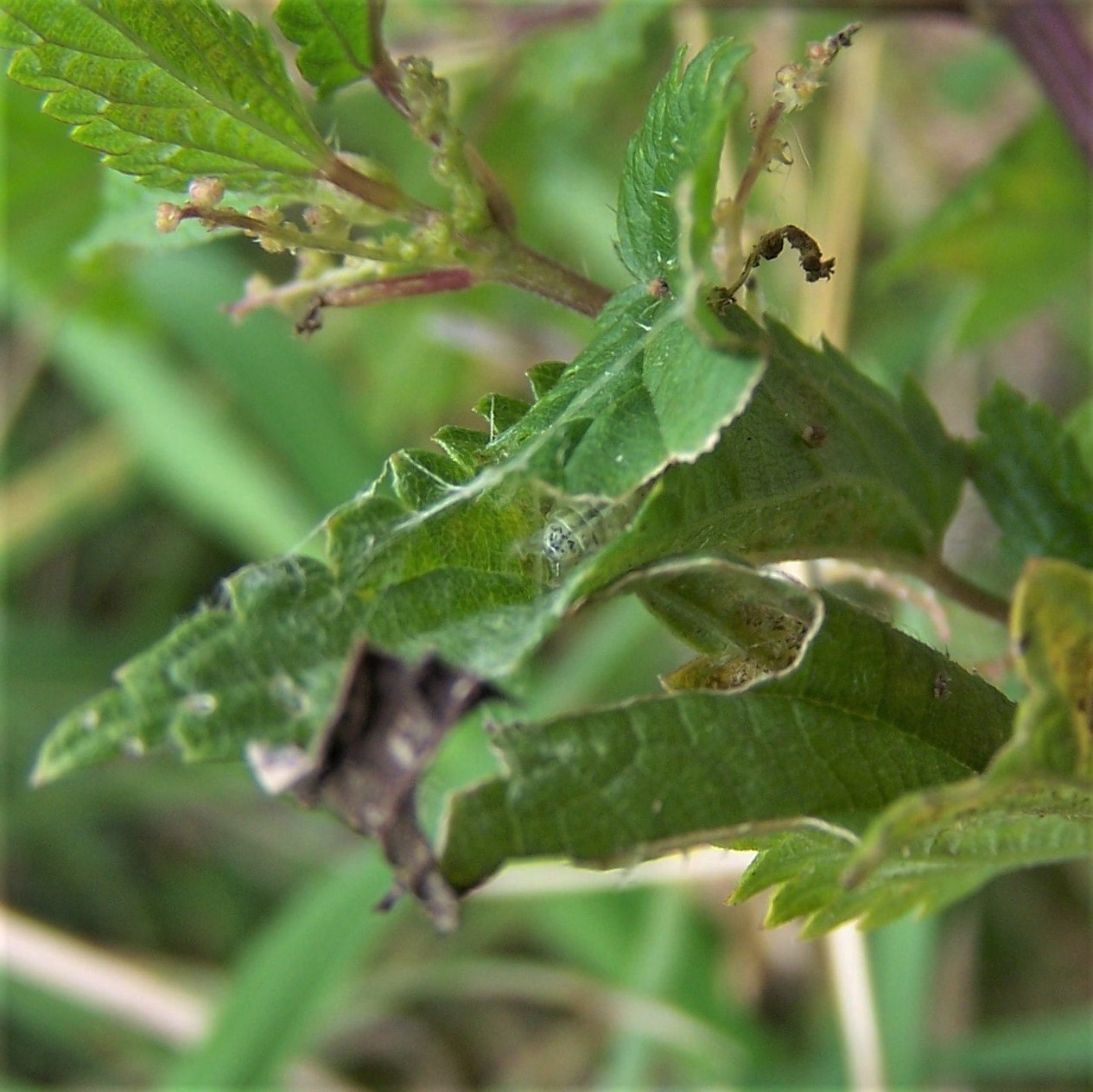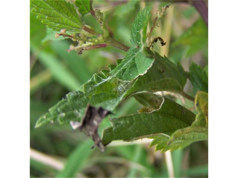 Die Larven fertigen Blatttüten an Brennnessel (Urtica), Hopfen (Humulus) und Mädesüß (Filipendula ulmaria) (Rosales).