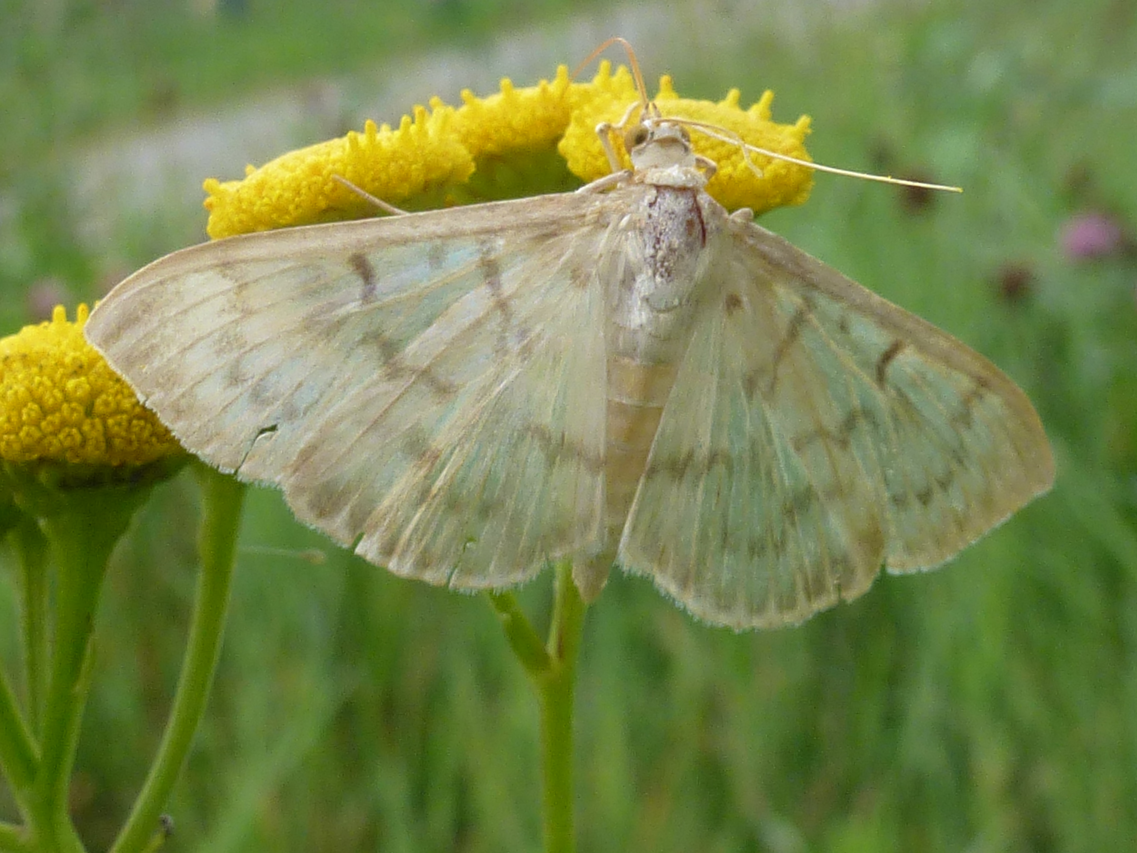 Ähnliche Arten: Bei Paratalanta pandalis, Paracorsia repandalis, Paratalanta hyalinalis, Anania crocealis, Anania verbascalis, Mecyna flavalis, Ostrinia nubilalis und Sitochroa verticalis sind die Flügel nicht hyalin und haben keinen irisierenden Effekt. Bei Ostrinia nubilalis reicht die äußere Querlinie viel weniger weit an den Strichmakel im Diskalfeld heran und bei Anania verbascalis ist die äußere Querlinie ungezackt.