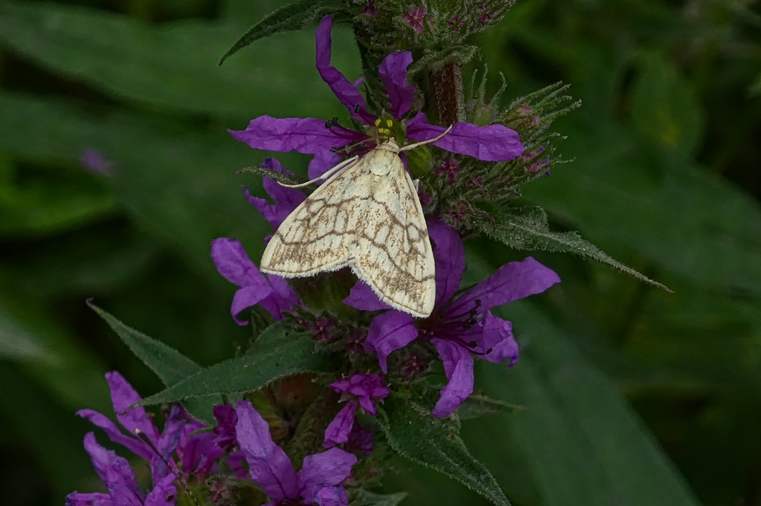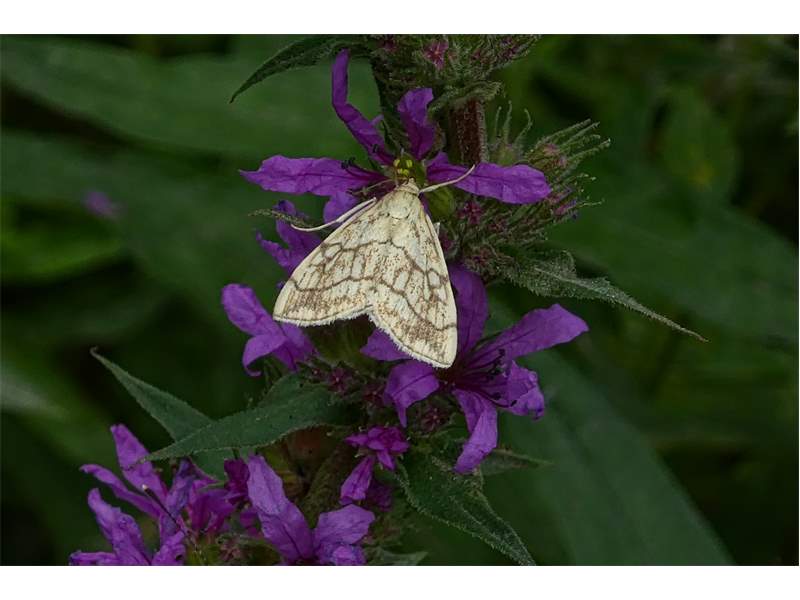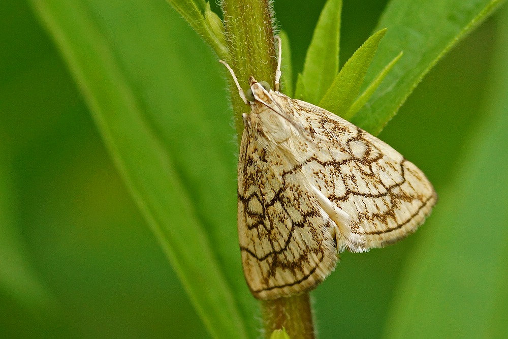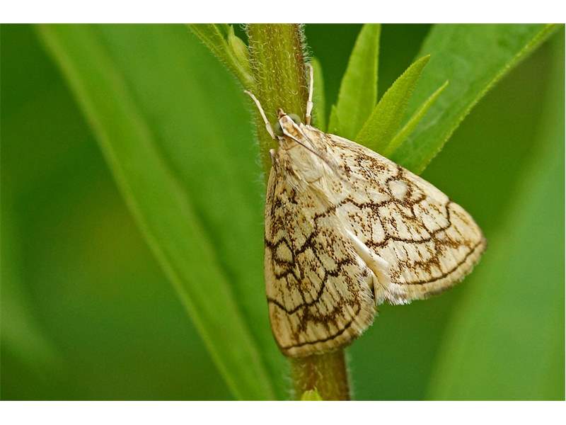 Vorderflügel X–Y mm lang, cremefarben bis hellgelb; Flügeladern dunkelbraun beschuppt; bei 2/5 und 3/4 jeweils eine dunkelbraune gewellte Querlinie; Basal- und Mittelfeld mit diffus eingestreuten braunen Schuppen; Mittelfeld mit braungesäumtem Nierenmakel in Form einer "8", der basal die innere Querlinie berührt; Außenfeld mit dunkelbrauner Querbinde, die in zwei Bögen verläuft und median an die äußere Querlinie stößt; Flügelaußenrand dunkelbraun gesäumt; Schuppen des Fransensaums hellgelb, apikal braun.