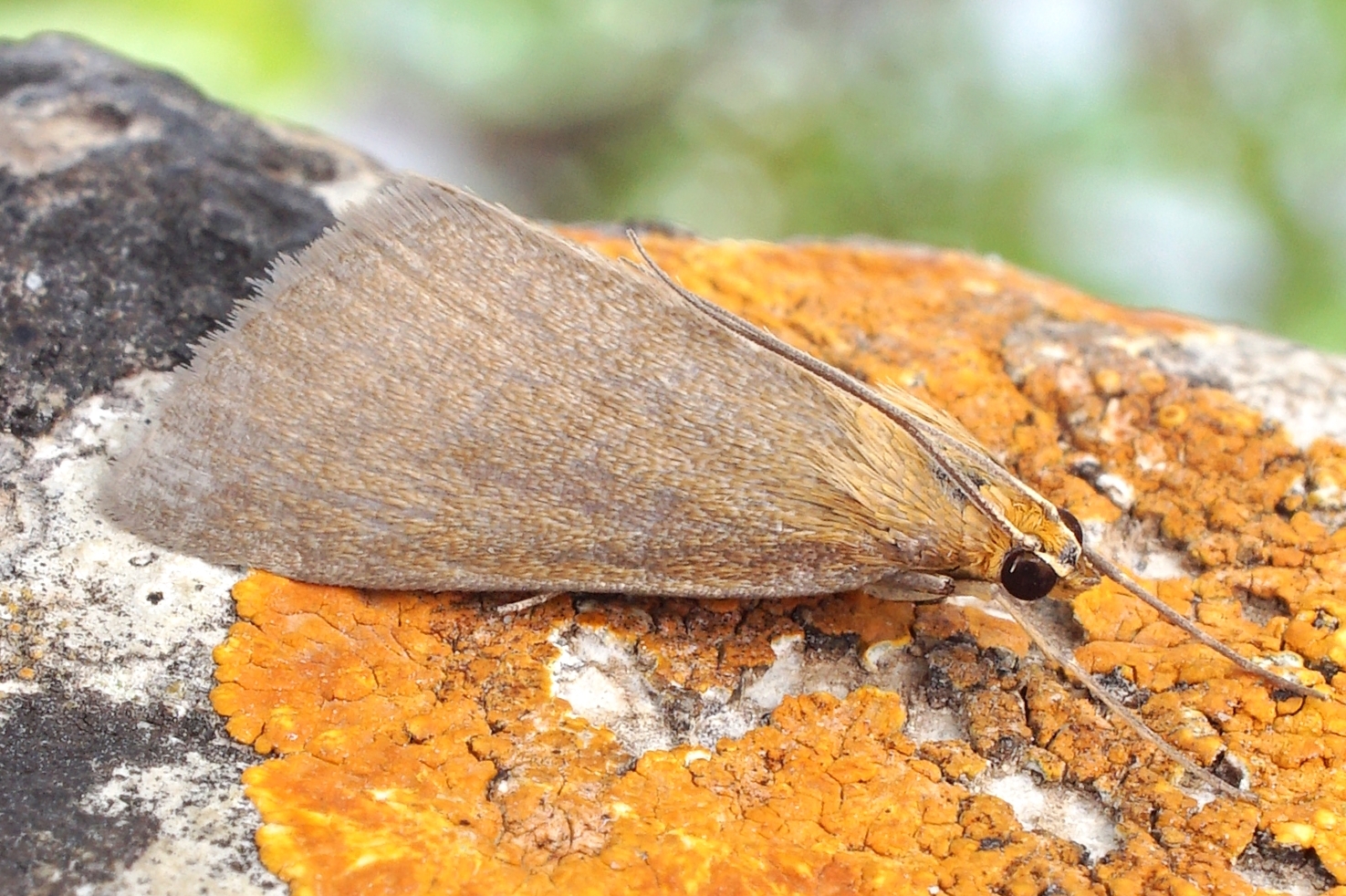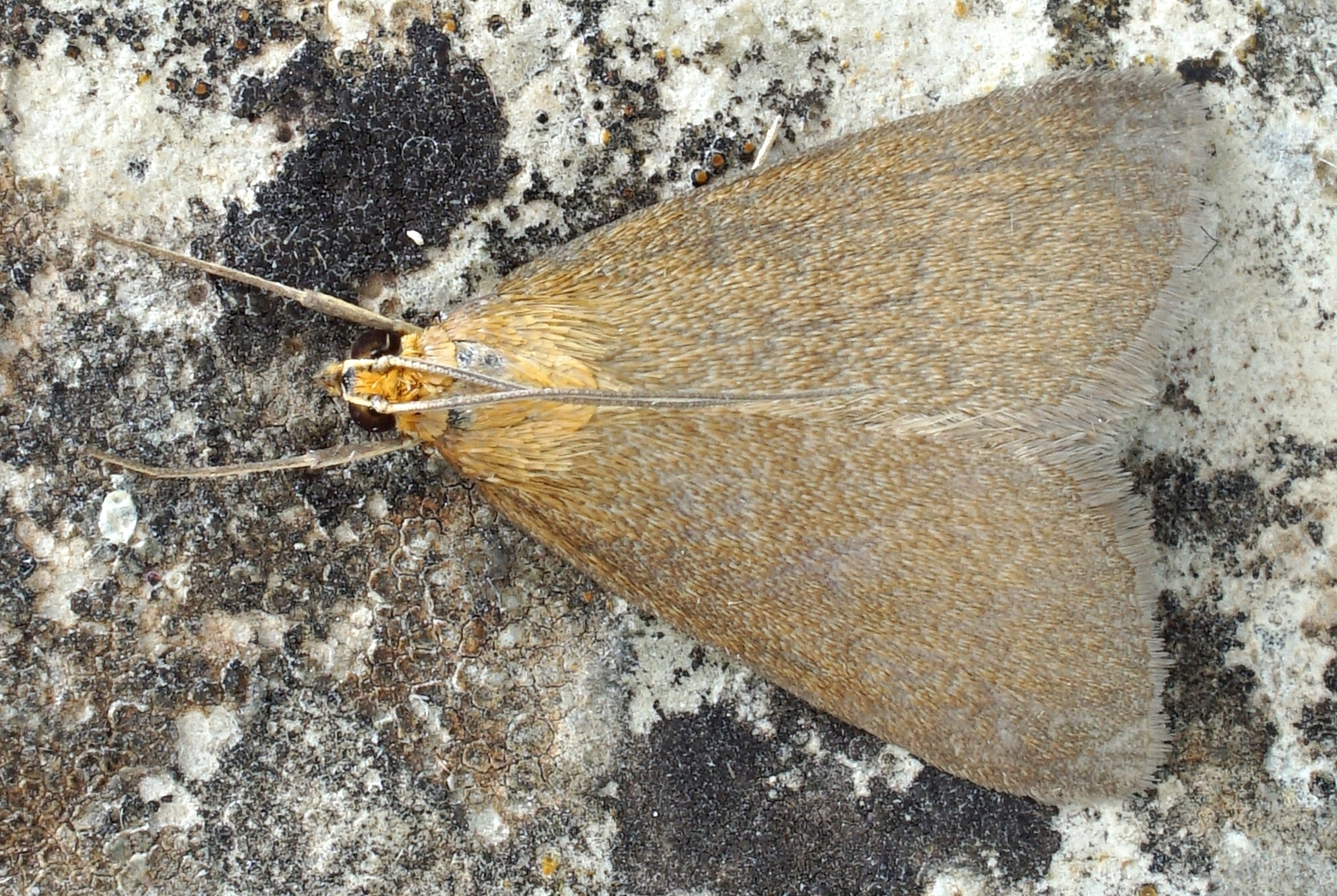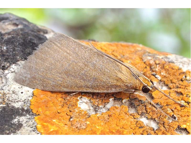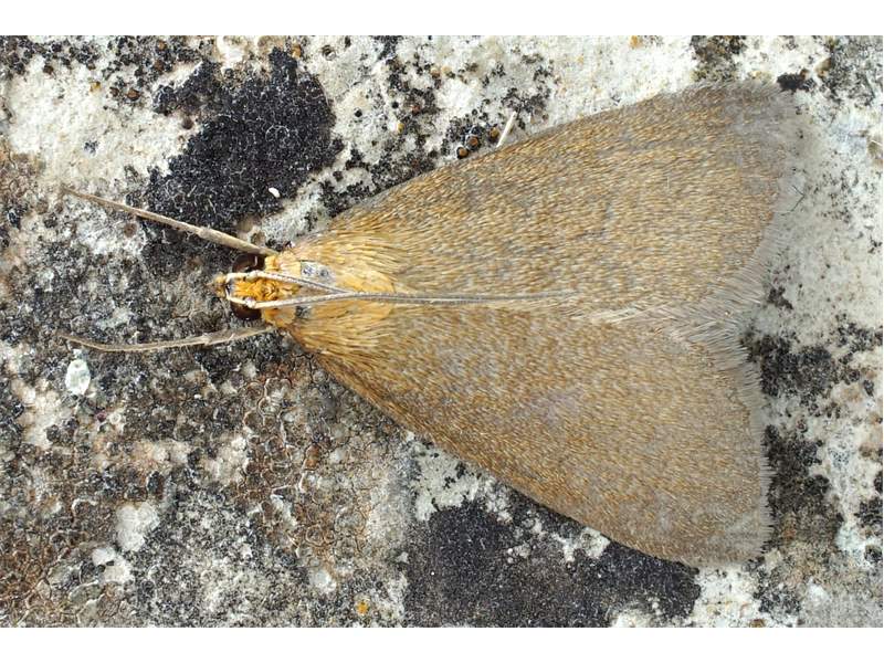 Vorderflügel einheitlich braun gefärbt; Beschuppung leicht glänzend.