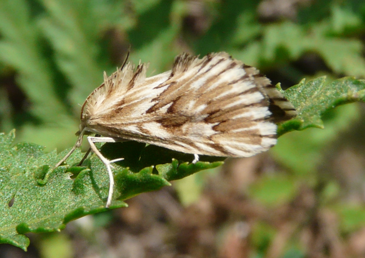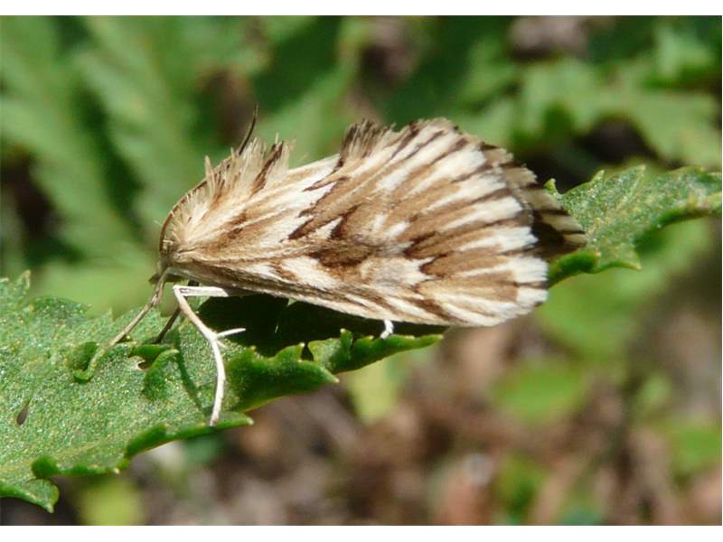 Vorderflügel X–Y mm lang; braun; bei 3/4 eine stark gezähnte dunkelbraune Querlinie, die auf der Flügelmitte eine Biegung macht und bei 1/2 auf dem Flügelhinterrand endet; Basalfeld hellbraun, entlang der gezackten Querlinie weiß oder cremefarben; an der Biegung der Querlinie braune gezackte Zeichnungselemente; Außenfeld braun, am Apex mit einem weißen Dreieck und weißen Linien, die sich von den Zacken der Querlinie zum Flügelaußenrand ziehen; Marginalflecken dunkelbraun und strichförmig; Fransensaum weiß, dunkelbraun auf Höhe jedes Marginalflecks.