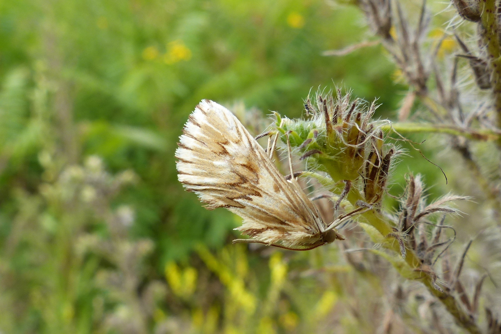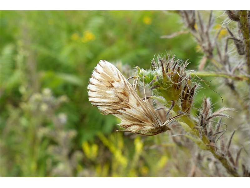 Thorax mit langen hellbraunen Schuppen, die nach hinten oben abstehen.