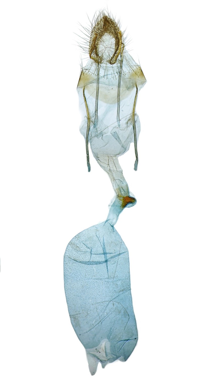 Weibliches Genital von Donacaula forficella. Dresden, Lössnitz, 21.08.1936, leg. E. Möbius. coll. E. Möbius. Coll. Senckenberg Museum für Tierkunde Dresden. Prep. MTD 338, Johanna Stahl.