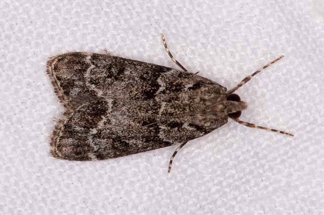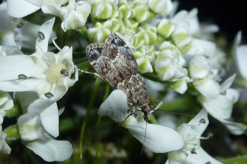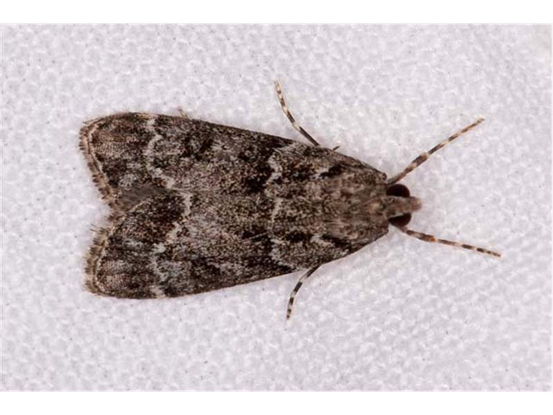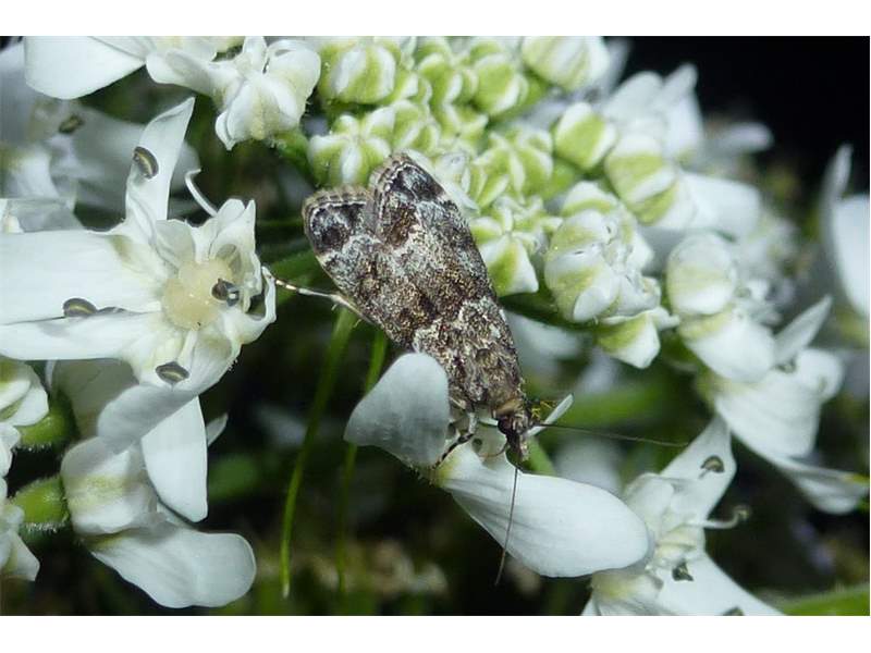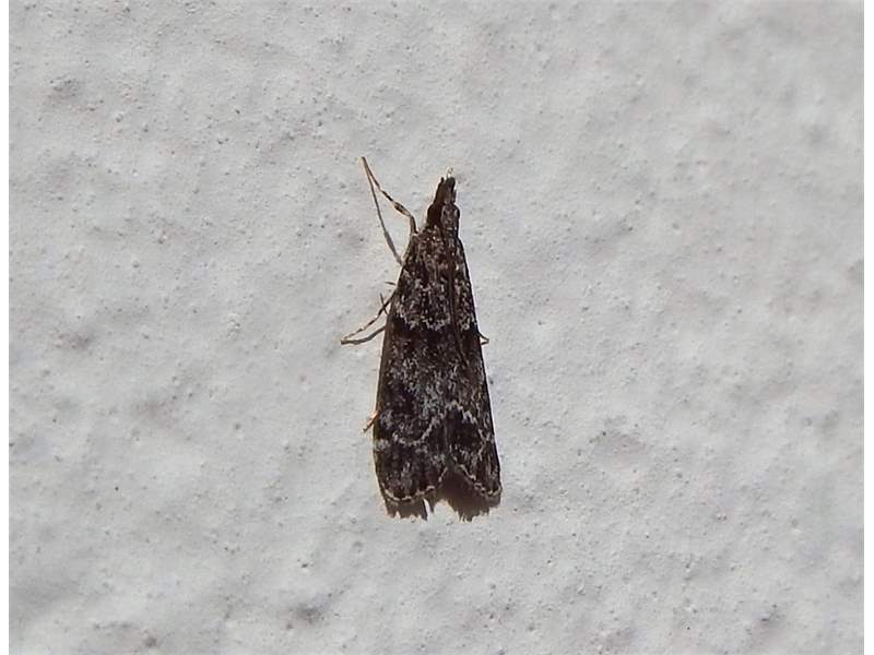 Eudonia lacustrata; abgeflogene Exemplare dieser beiden Arten können nicht nach äußeren Merkmalen bestimmt werden.
